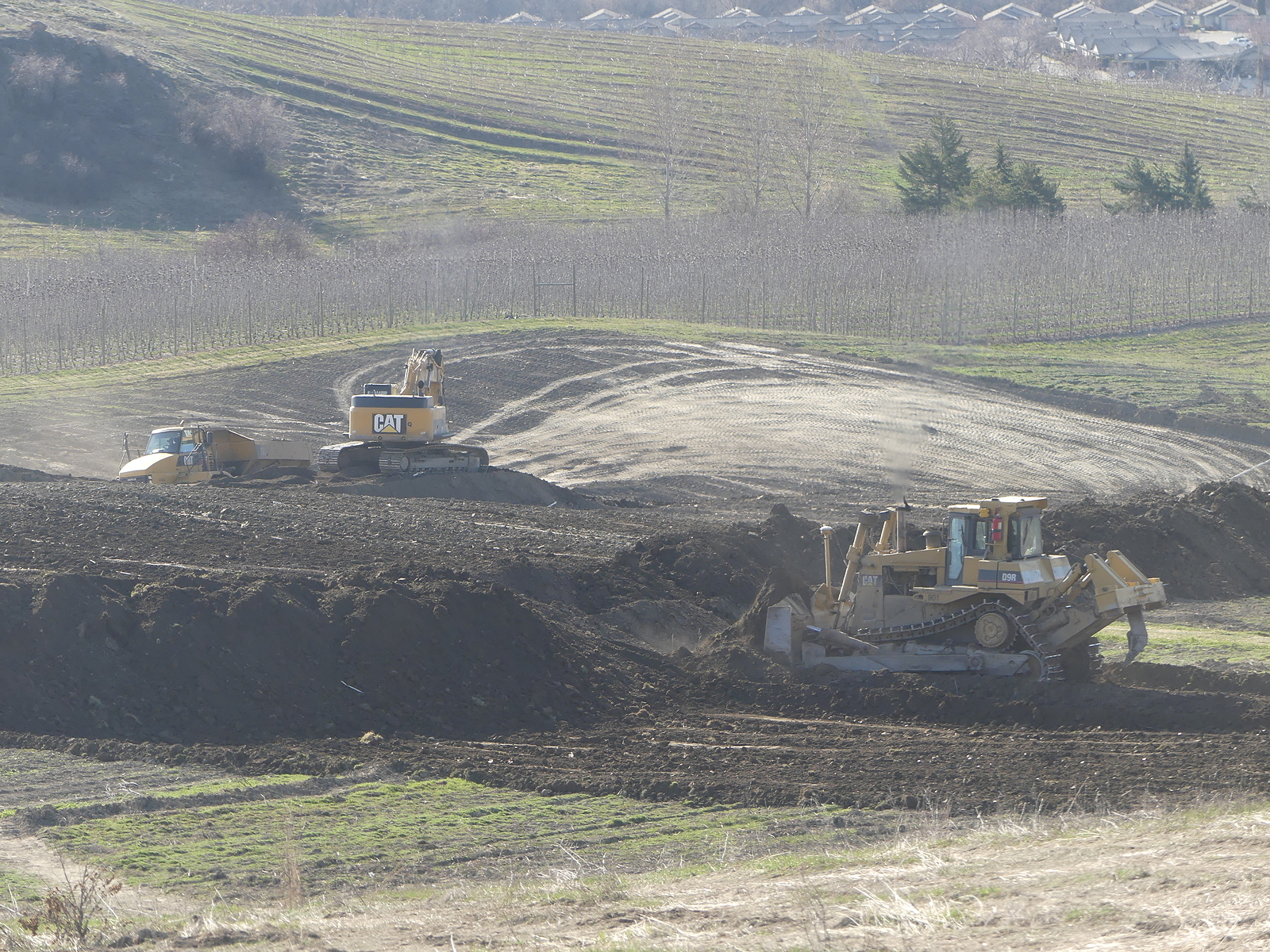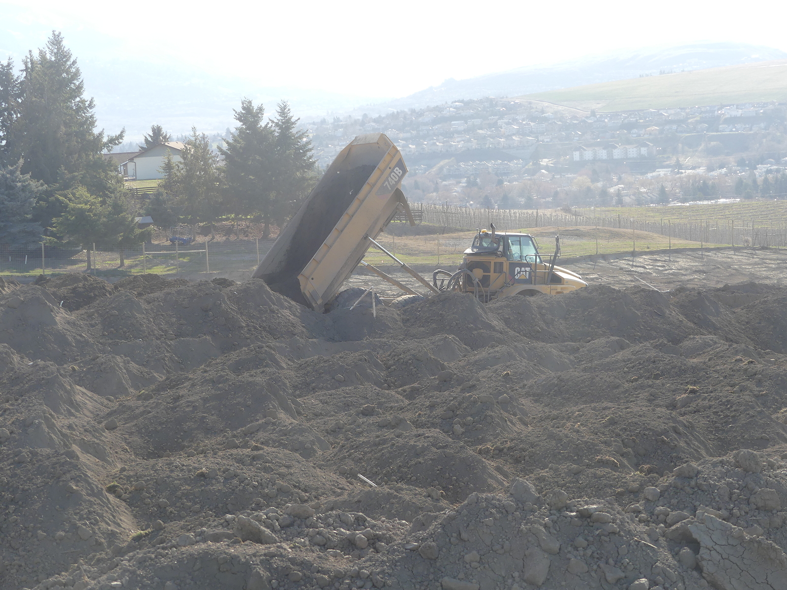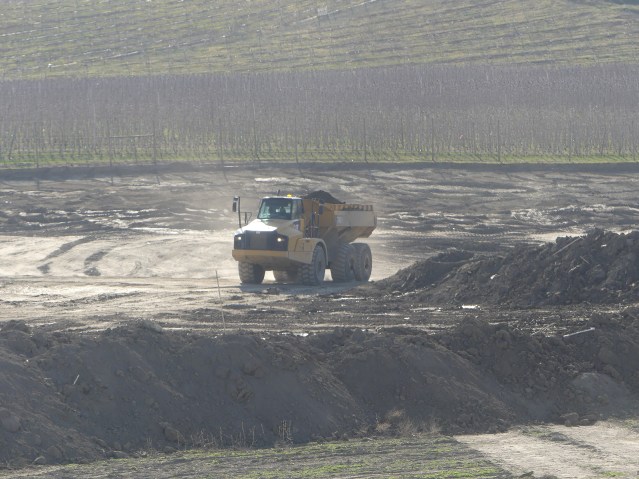 Clay, plastic, subsoil, top soil, glacial till, rock, it doesn’t matter. It is all mixed together in one big sterile jumble that some industrialized fertilizer, nitrogen, pulled from the atmosphere, will fix, right, to grow export fruit, or maybe wine, who knows, who cares.