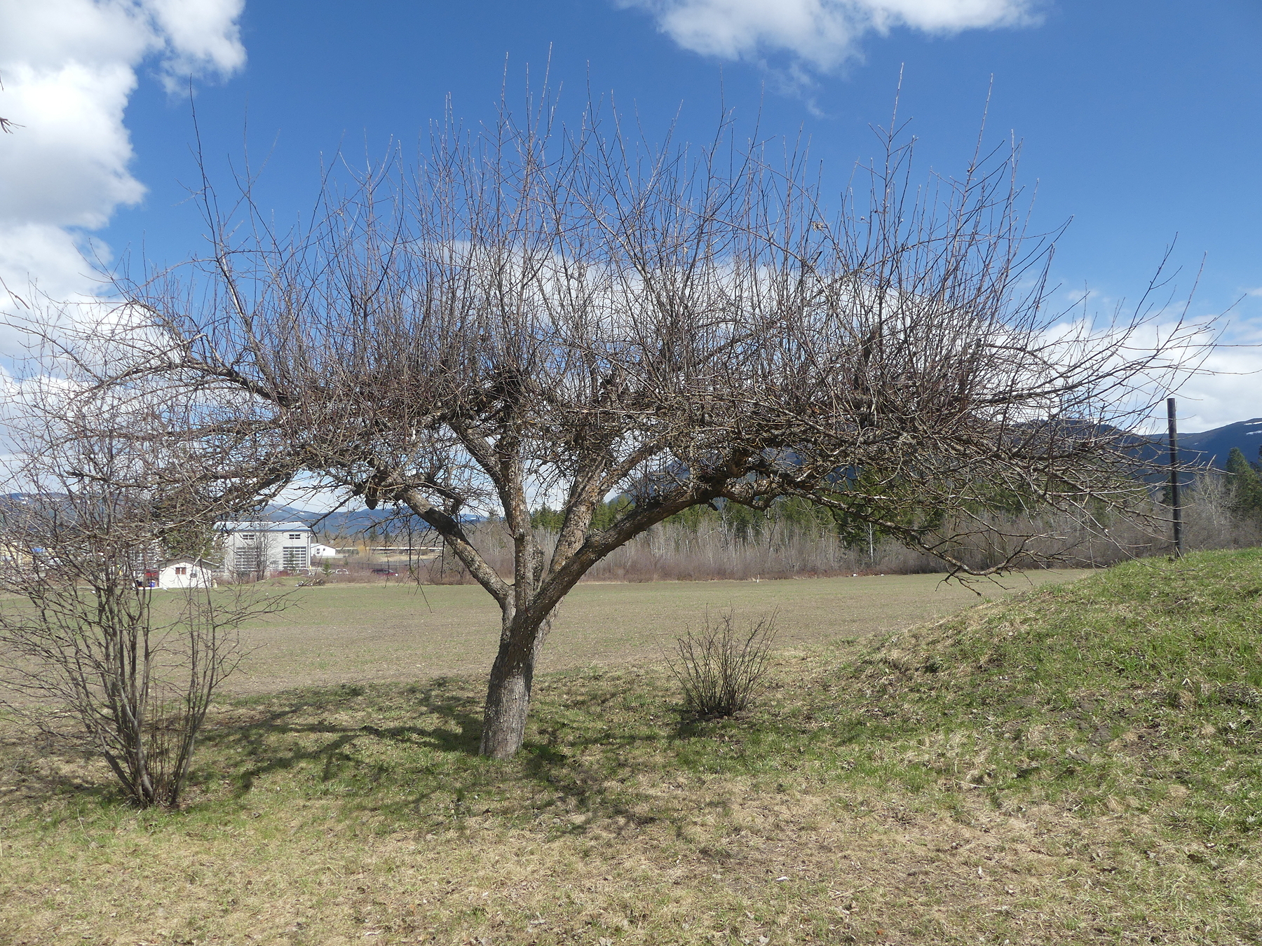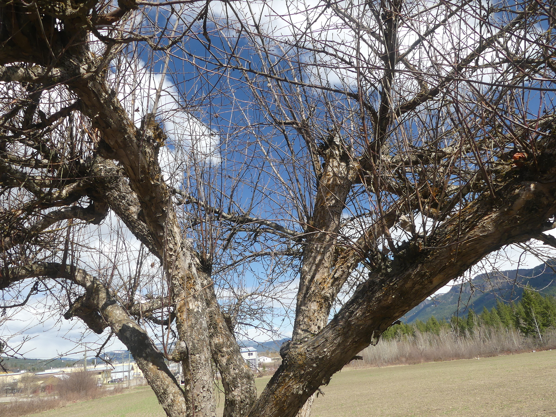 Ah, such fun. Here are Edna’s cherry trees at Splatsin, pruned so she can reach the fruit without a family giraffe. Sometimes, that’s what food sustainability means most of all.