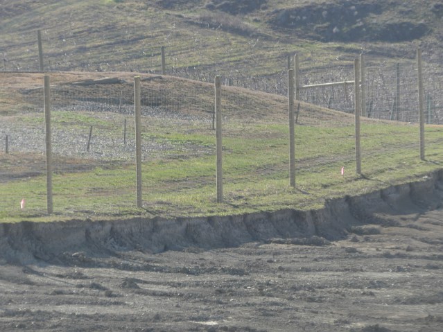 Then I realized that it hasn’t been grazed. Down by Bella Vista Road, the deer fences have gone up this spring, to protect young orchards or vineyards from deer, or perhaps just because they keep people out.