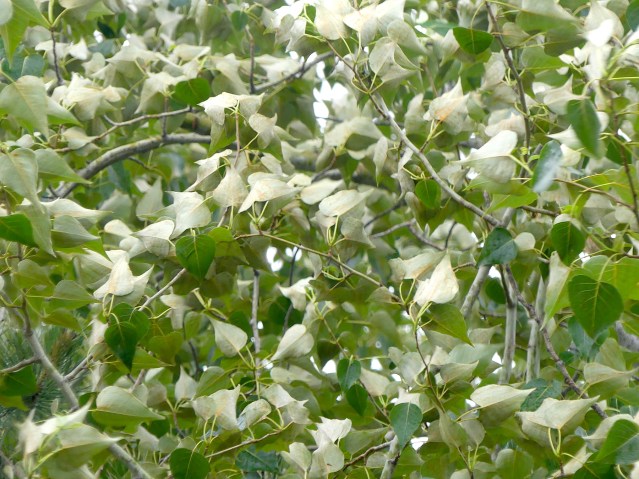 In the pattern below, for instance, the relative density of weighted material (dark branches) is not enough to fully block the light. We see through to the light leaves on the far side and know that we can push through to them and, too, be in the light. We will lose the weight of being unable to see further.