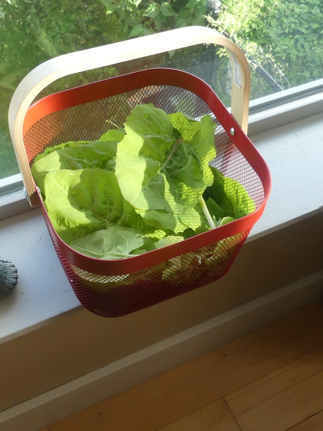 This is a waste. What’s more, we can grow apples in other zones, where water loss is not an issue, we can grow other products than grapes to make alcohol, and as for the genetic manipulation of foodstuffs to support sustainability, that is not only slavery and theft of the great indigenous crops of the entire northern hemisphere. It also supports the continuation of settler culture by supporting industrial packing, distribution and sale of fruit, with the huge costs that it entails. Tomorrow, I will bring together the posts on this blog which have already addressed these issues, and after that I will compile a compendium of my posts on alternate forms of sustainability, ones that will allow sustainability in food and betterment of human and social relationships, without all this slavery and bondage. We are not helpless in the face of documents like this. We can champion the Earth without fear. Right, orach. Here’s my second harvest from 45 feet of row. If packaged and sold in a store, it would fetch $120 in net wholesale profit, after labour, packaging, seed and water are paid for. There are other costs, of course, but, still.