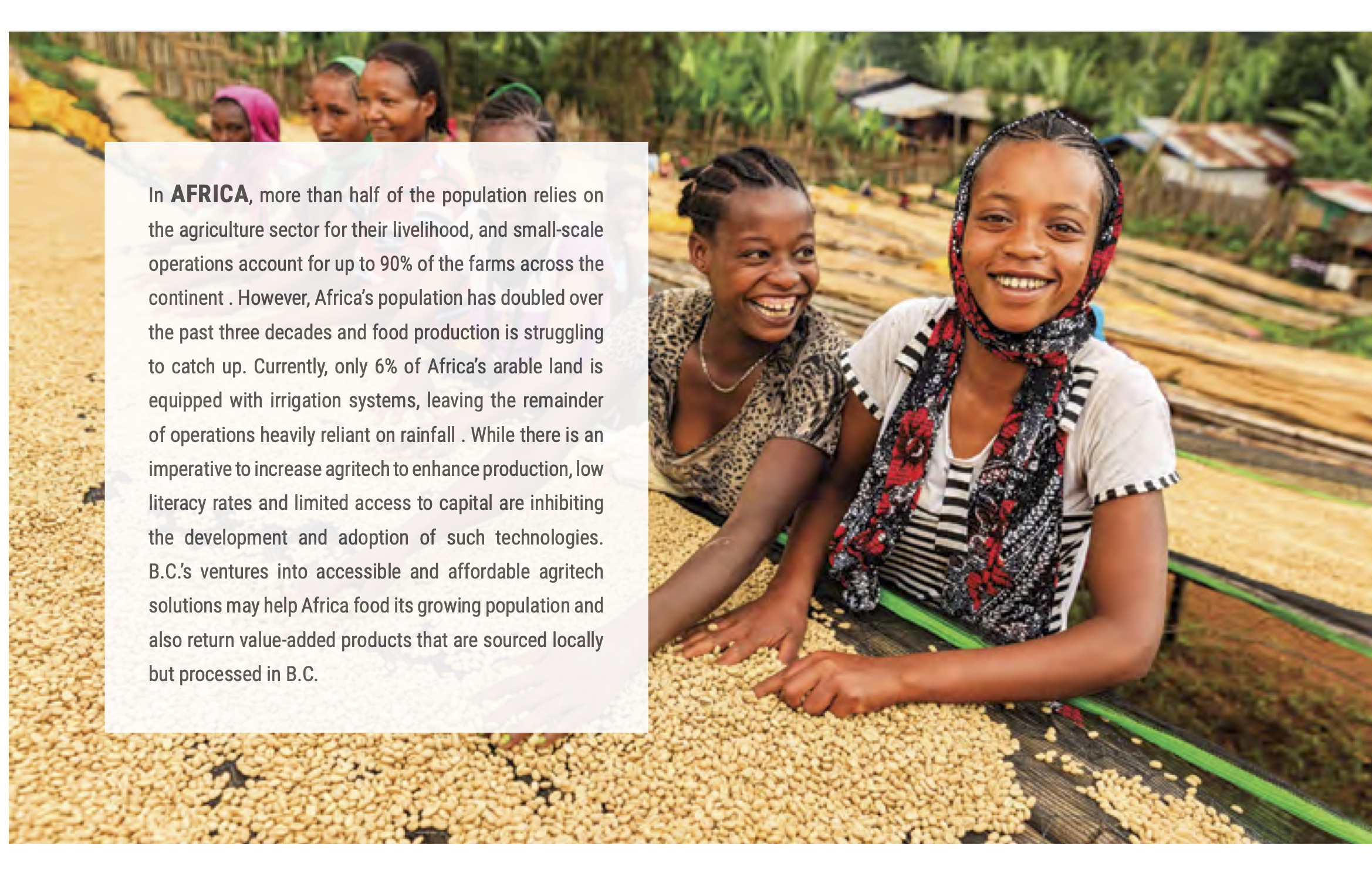 Whatever the problems Africa has with food supply, they are not problems with industrialization. Industrialization is collapsing in Zimbabwe due to political, not technical, issues, and experiments with industrializing agriculture in Ethiopia are abject political failures, which include failures of supply chains. It is not so much different here. The entire argument of this document is that food sustainability is tied to reducing transportation costs and minimizing the effect of climate change on current agricultural practices, by altering the climate and genetically-altering crops, in order to maintain contemporary forms of distribution and contemporary crops in contemporary locations.  That is like a drunk downing a bottle of vodka to get over a drunken stupor. We don’t have to grow grapes here, to provide elite tourism opportunities.