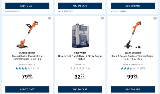 See that? Things to hack the garden back lest it take over, and then blowers to blow the cut-off bits away. That’s not all. Look: