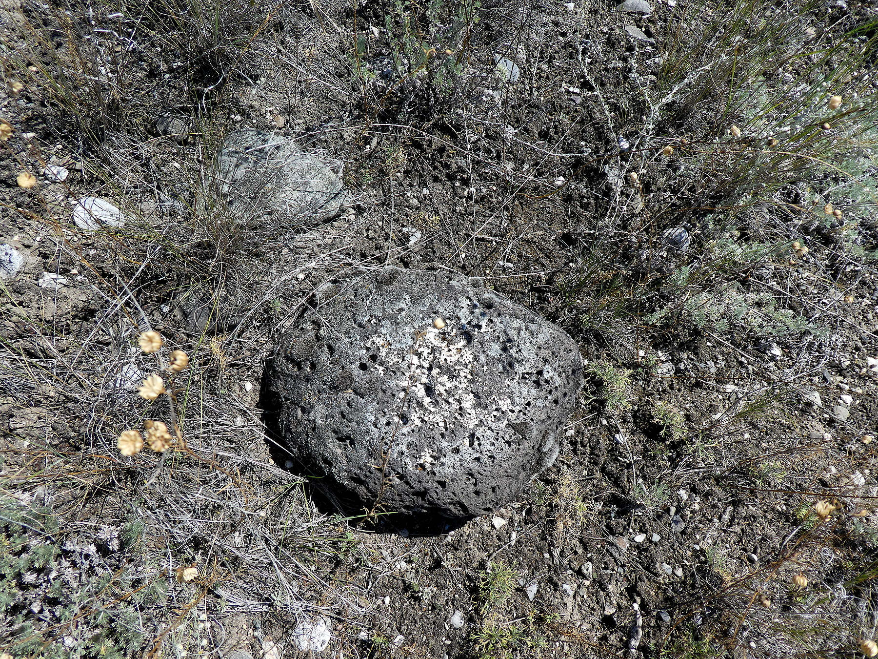 … are, at least in a lake environment, one, in three different states. Interest, and life, comes from their points of meeting. It is language that comes from their points of differing. The stone above, for instance, is a lump of glacially-broken, peri-glacially rounded, basalt, formed from subducted seawater melting rock at pressure deep under the Earth and extruded as a flood of liquid, then cooled in the air. Look how after ice and flood it has worked with wind and water to shape a bowl around itself, in its own image, and how it is covered with ancient lichens, which are cross-species communities, not individuals.