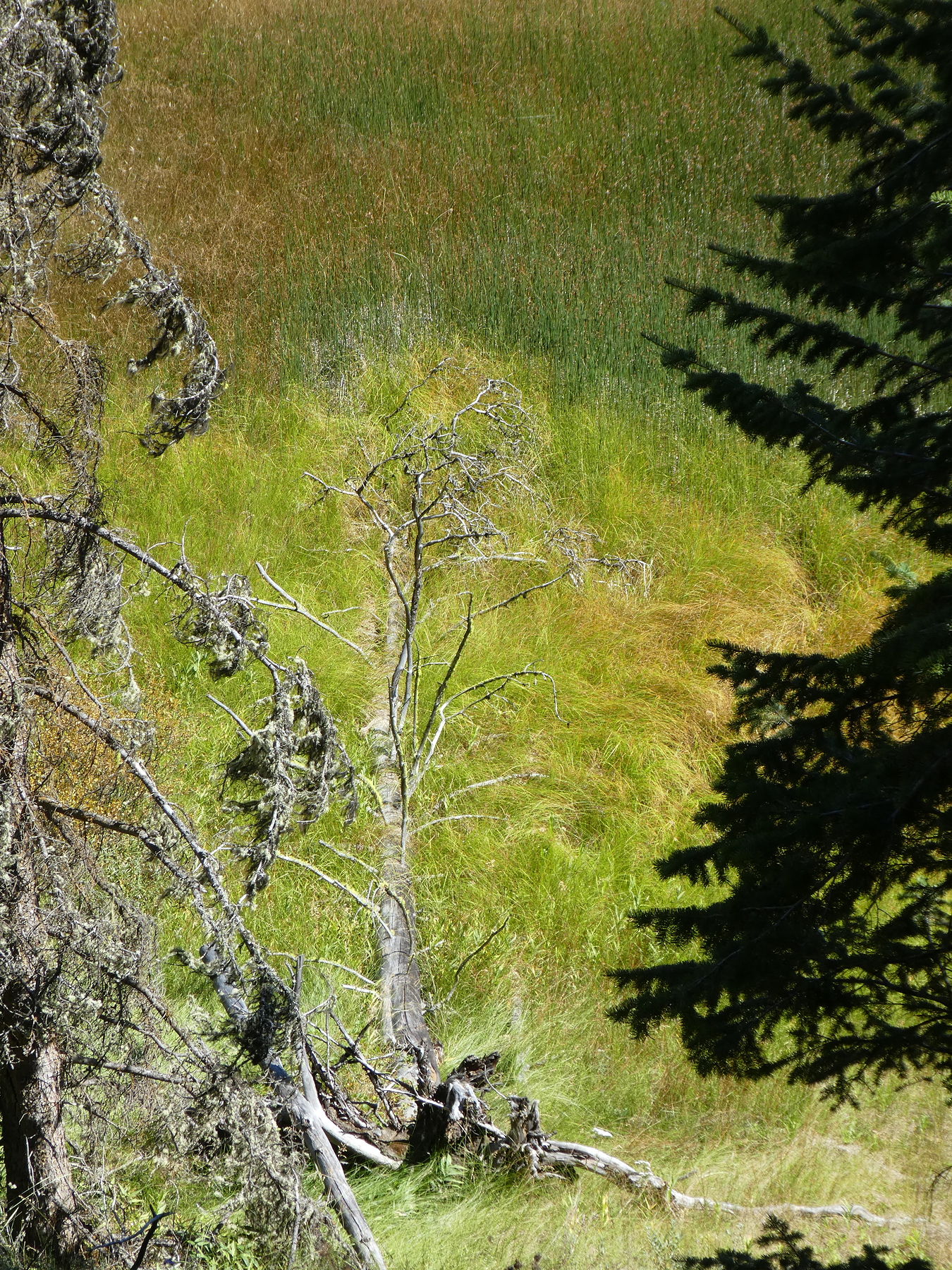 Then again, here in Secwépemc Territory, it is often a savanna, ingrown because of a failure to see anything other than a European forest. Trees that might otherwise live five hundred or a thousand years die at 200 when this kind of thing happens. The old ones below should be surrounded by grass. “Succession,” this is called. Hunh.