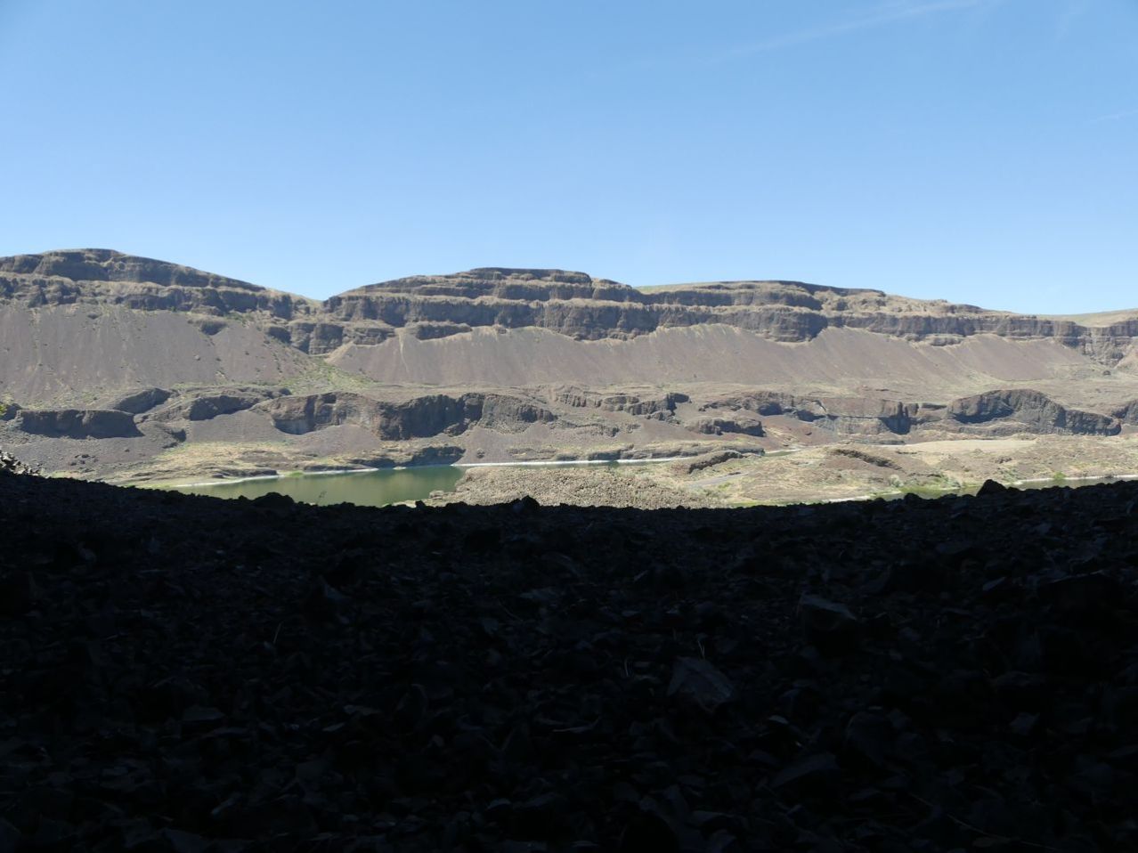 This water is gone, too. Here’s a glimpse of the vanished river from the mouth of one of the Lake Lenore Caves. The water in the lake is largely seepage from Banks Lake, the Grand Coulee Dam’s irrigation storage pond.
