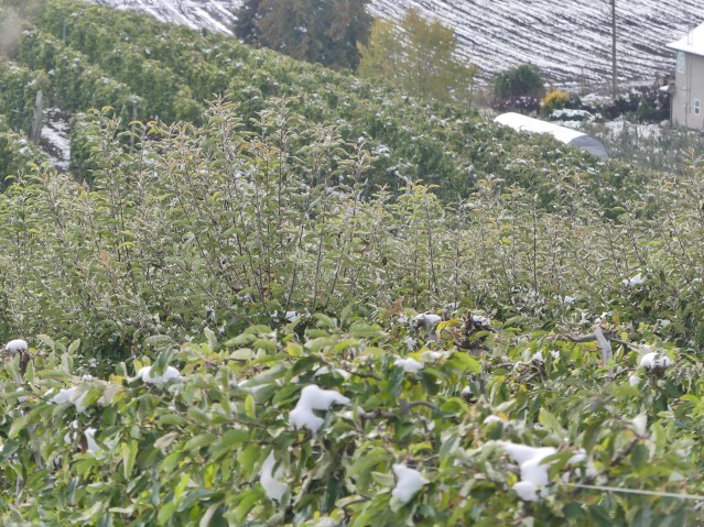 Really, it’s not so much climate change from an Earthly sense, but a disruption to settler expectations. Take this apple orchard below the vineyard (and below these choke cherries):