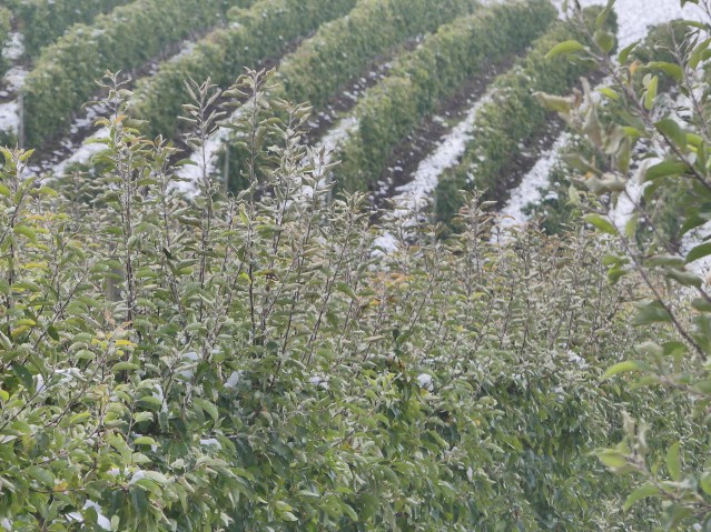 Note how a kind of industrial farming needs lots of top growth to draw nutrients through the tree, which then has to be pruned off for the fruit to ripen properly. This fall wasn’t quite one for this aggressive stance and the pruning was cut short just as it began.