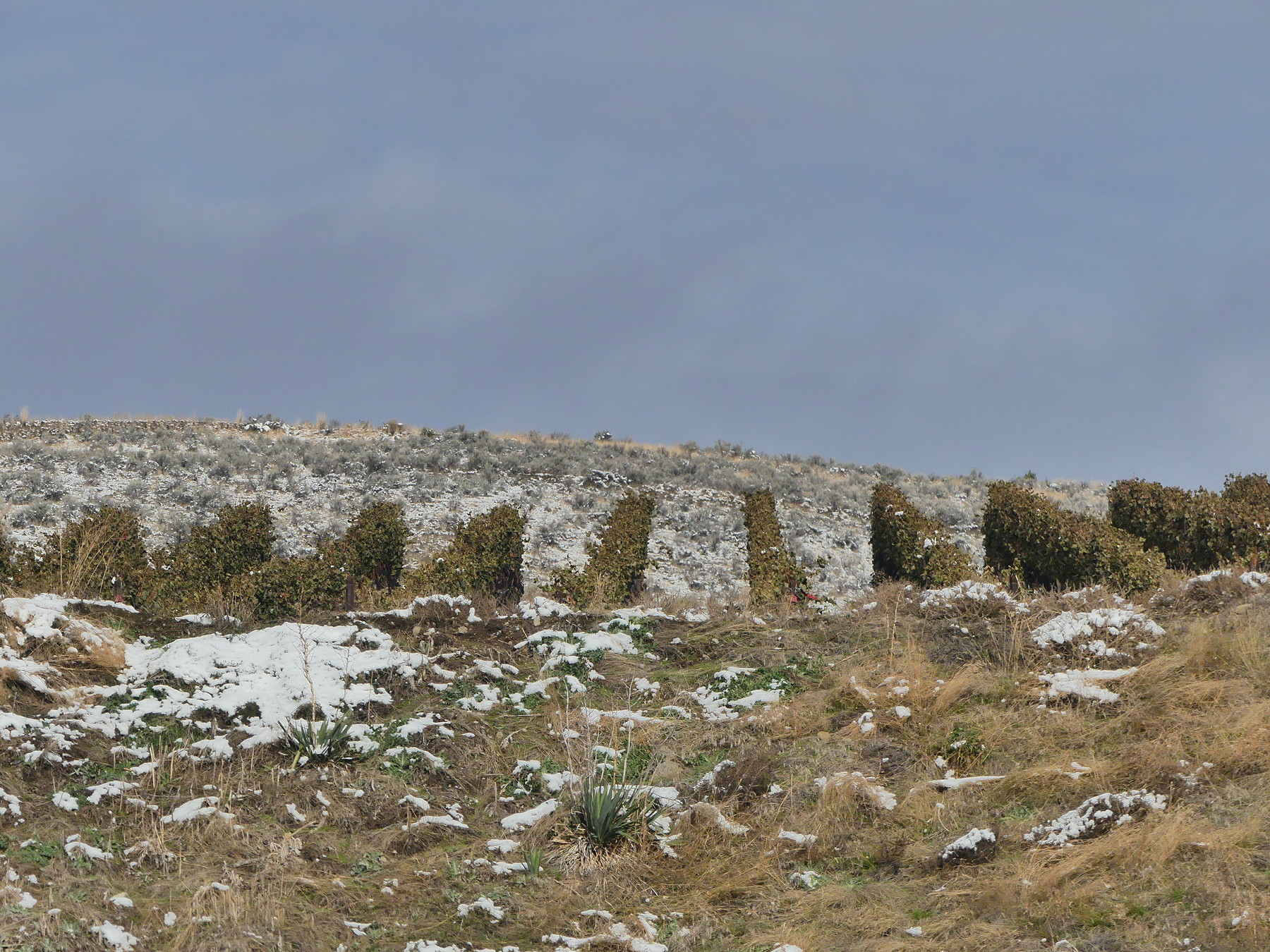Here’s the Vineyard at the Rise, frozen with grapes on the vine.