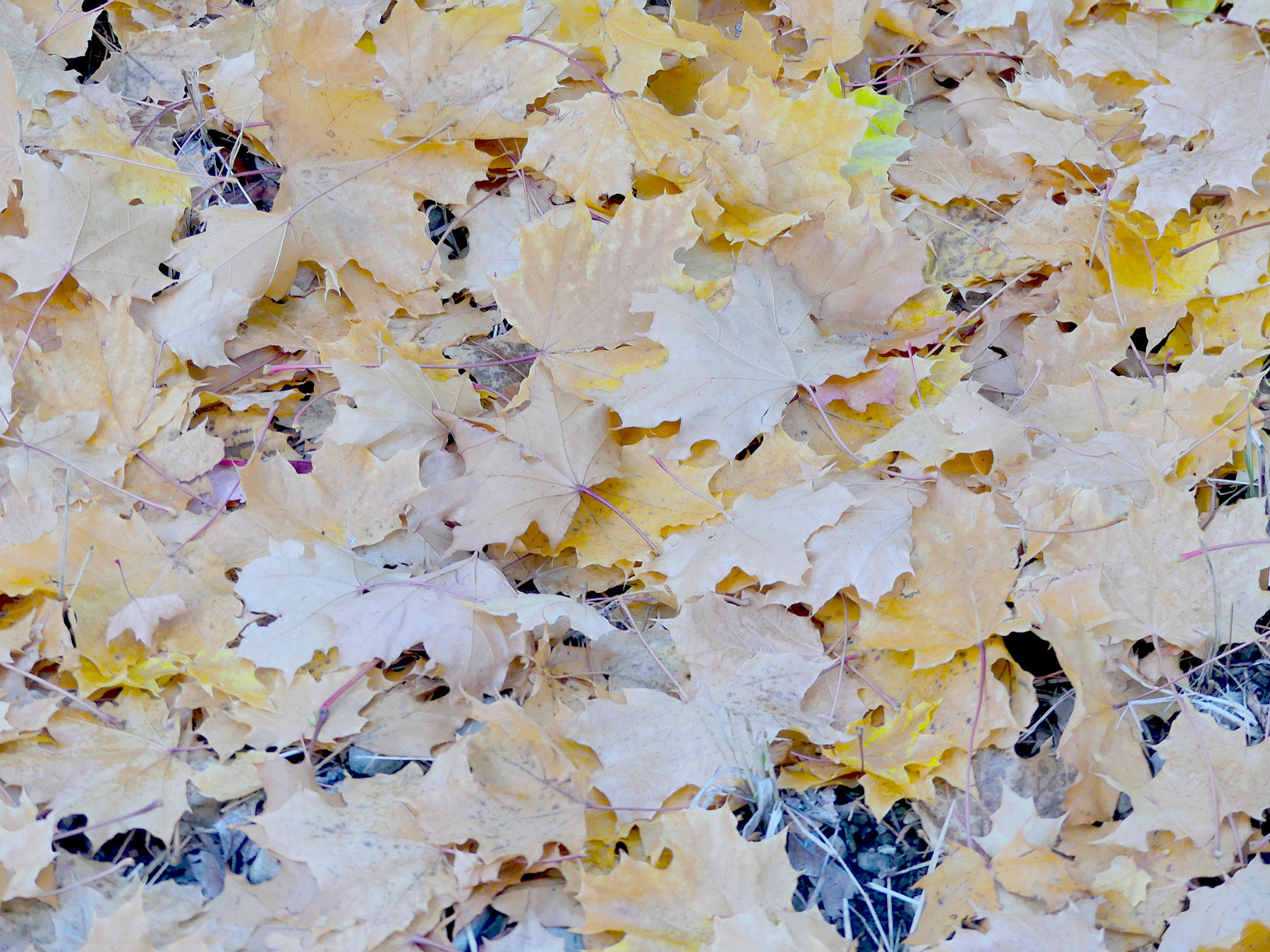 These maple leaves are still alive and capturing the sun — some of them. Others are dead. None are attached to a tree. None can reproduce. None can feed a root or a bud.