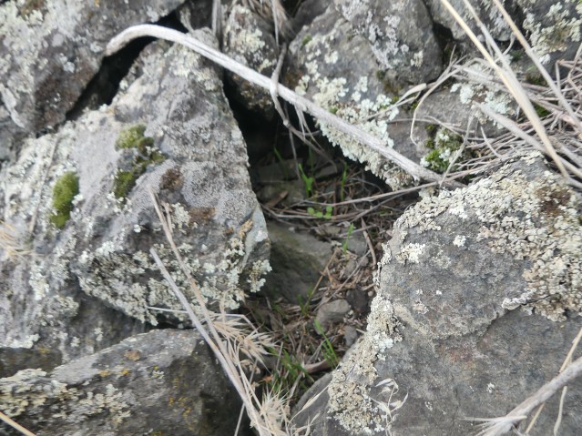 Under the stone to the left of the centre of the image. Obviously, a great choice. Man, I left with a skip in my step. Fare well, my dear. ( I got back to my summer kitchen and a male was looking for her. Hmmmm.) Here’s her new home in its full light: