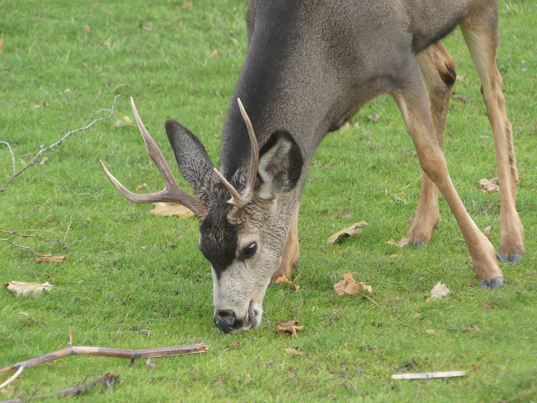 And here you can see the balance between the cutting and composting ends. In this case, with the protective flap down over the spreader.