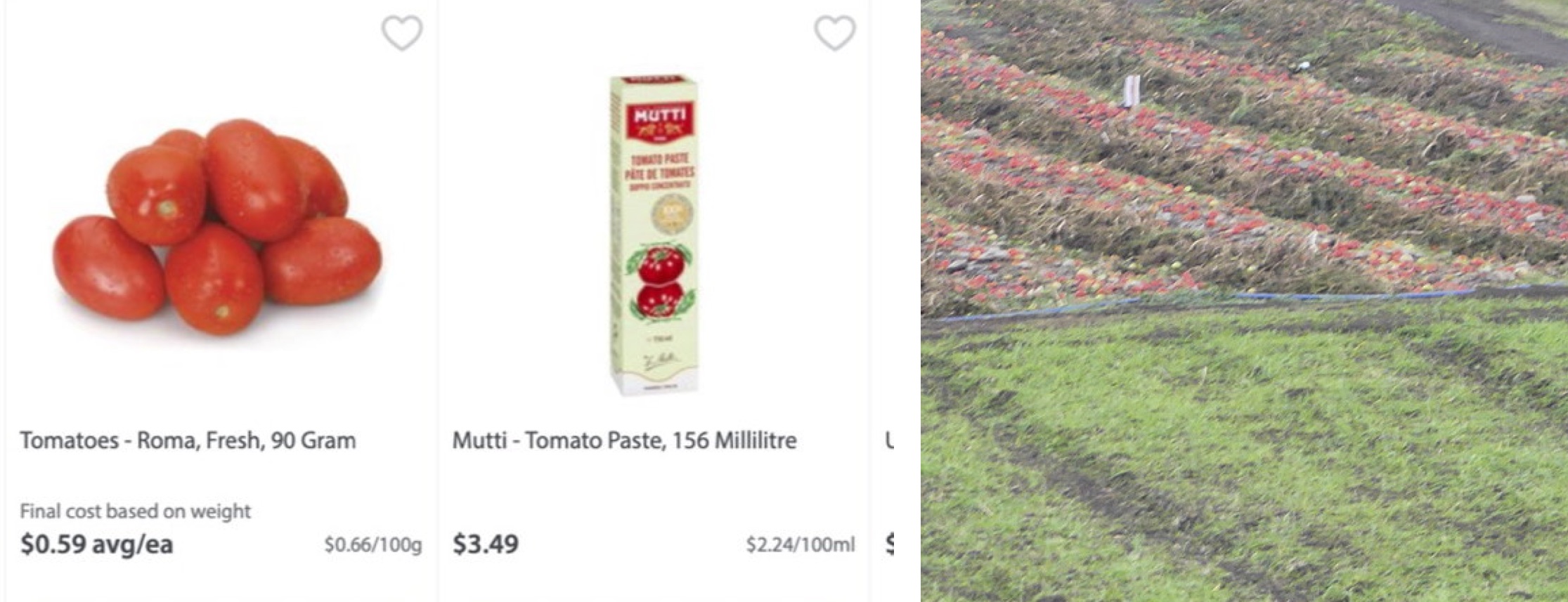 The two on the left are sold as food, but they are identical with the image of waste on the right, an image that would (and does) fail to create the desire that transforms them into a social purchase. All three, however, hold in themselves the identical social and environmental subsidy, of, say 87.5%, following our off-the-top-of-the-head-but-not-a-bad-guess math above, which is used to support industrial and petrochemical culture, in other words, the elite classes. In order to purchase the social offering (food), we have to work for them, to further their ownership of these social interchanges. It’s a neat aristocratic trick, so neat that it gets replicated and, rather than growing tomatoes, or even picking them, the desirable model is to pay for the image of tomatoes and grind down labourers and the Earth more with every passing year. When one is celebrating harvest, and the bounty of the land, one is not really celebrating that, because the whole process discredits and industrializes it. Consider the German brand name: “Mutti.” That’s “Mommy” in English. Mom’s kitchen, you might say, the pot boiling on the back of the stove all day, but you might also say Mother Earth, or Mommy Earth, really. Hey, we’re not talking about a mature culture here, just one that waits around in the kitchen until Mom serves lunch, without having to deal with all the work that Mom (and others) did before the steaming bowl was set on the table, and this omission makes work appear to have no value in itself, and just, like, freely given, because we’re hungry, and so not deserving of pay. This terrible cascade of problems is why there is Fair Trade cocoa and coffee. Until we have Fair Trade tomatoes, we’ll only have placed the tip of the nail on our smallest toe on the path and tomatoes, and people, will still be worth only the image they can be used to make.