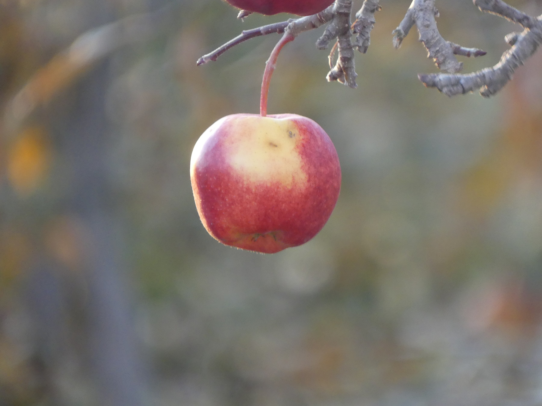These effects probably come to the Gala from the Red Delicious. The parentage of the Royal Gala is Ribston Pippin x Newtown Pippin = Cox Orange. Cox Orange x Red Delicious = Kidd’s Orange. Kidd’s Orange x Golden Delicious = Gala, which then mutated to Royal Gala. The tendency to mutate in both bud and fruit is a strong characteristic of Red Delicious, which is itself a red-coloured sport of Delicious. The sweetness and scent of a royal gala, that can fill a whole orchard and attract bears from miles around, is recognizably Delicious, as is the tough skin that really separates this apple from Gala, and which comes with the red mutation. As for the beautiful scent, it all evaporates within three days of picking, especially from small, weak, shaded apples in the heart of the tree, or apples hanging from downward-growing fruiting structures, where there was little of it at best and skins were thinnest due to the shade. At its worst, as in the apples above, this effect leaves the apple tasting like water and a bid of acid from the skin. What I find fascinating here is that the ability of the tree to mutate readily, and to create many opportunities for flavour in relation to climate, is perfectly matched by care given the tree. In other words, the ability of the tree to position itself in relation to climate is matched by the ability of humans to manipulate the climate within the tree. The current model of tree production, to manipulate apple DNA to match industrial packing and storage procedures, and to grow the resulting trees in short-lived hedges, replacing human care with carefully-timed water-borne nutrients, manipulated by heavy clipping of the top of the hedge, and discarding the tree with the fruiting structures become weak and shaded, is far less able to change with changing climate or changing cultures. Be happy with mutations. The tree makes them to catch our eye. Be caught.