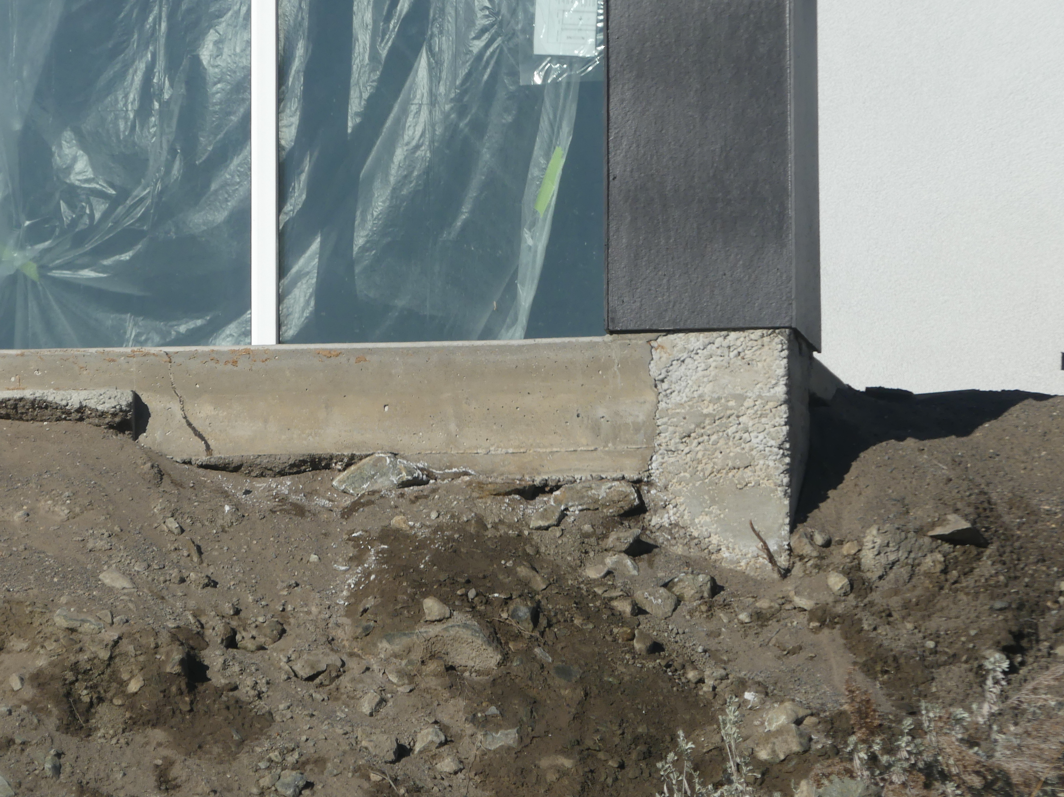 We’re talking about a new build here, with new concrete, a new slab, new walls: the works. The works, however, as you can see, includes under-floor seepage, and a crack in the basement floor! Nice touch. Not to be outdone, the guys on the next street down have their own take on building on a slope. Again, take a peek: