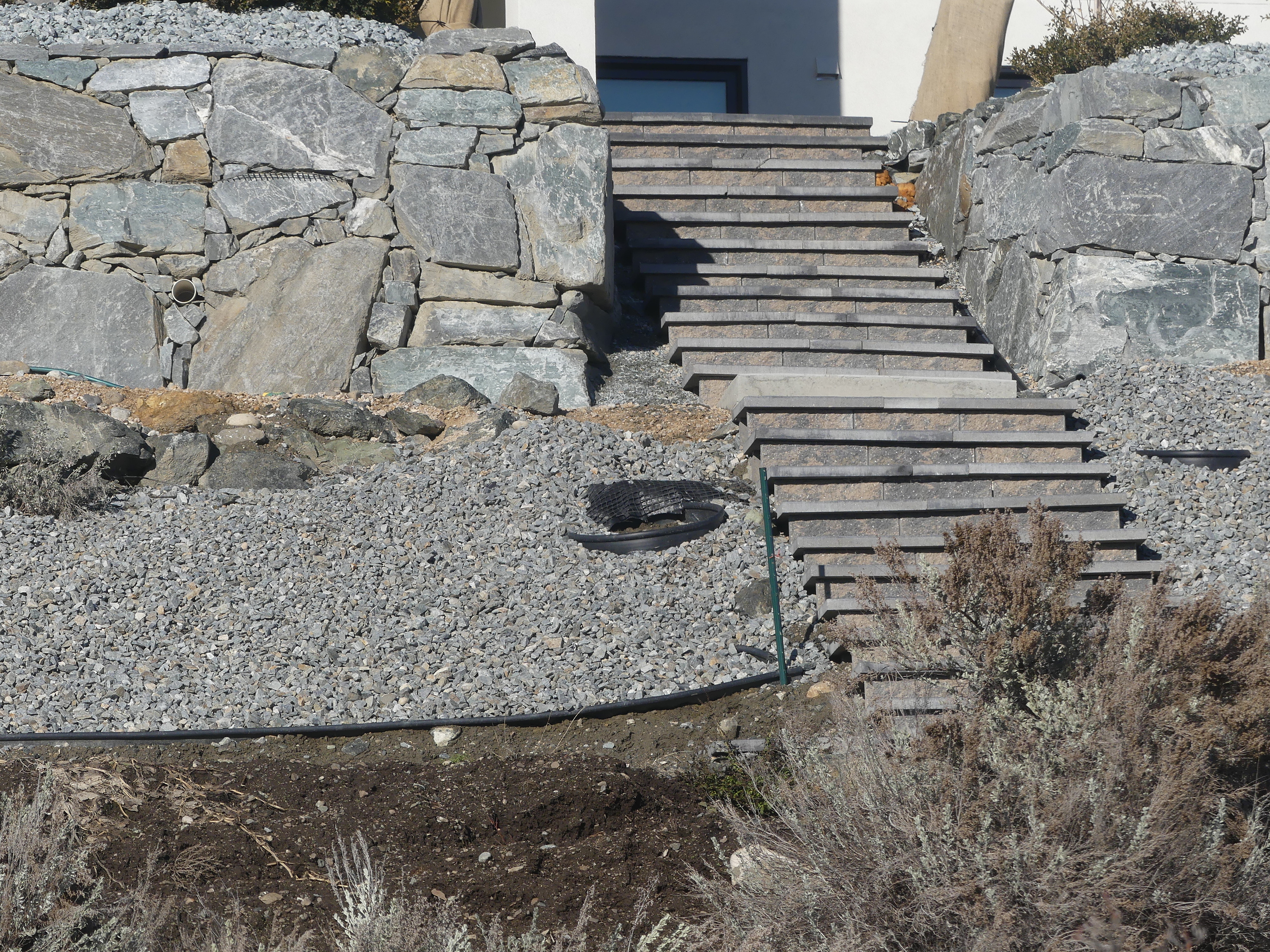 See that? The rocks that are supposed to stabilize this fragile slope are at the top of it, instead of at the bottom, where they might have helped to anchor it. But, don’t worry. They’ll be down there soon. The neighbours, you know the ones, could say a thing or two about that, I bet: