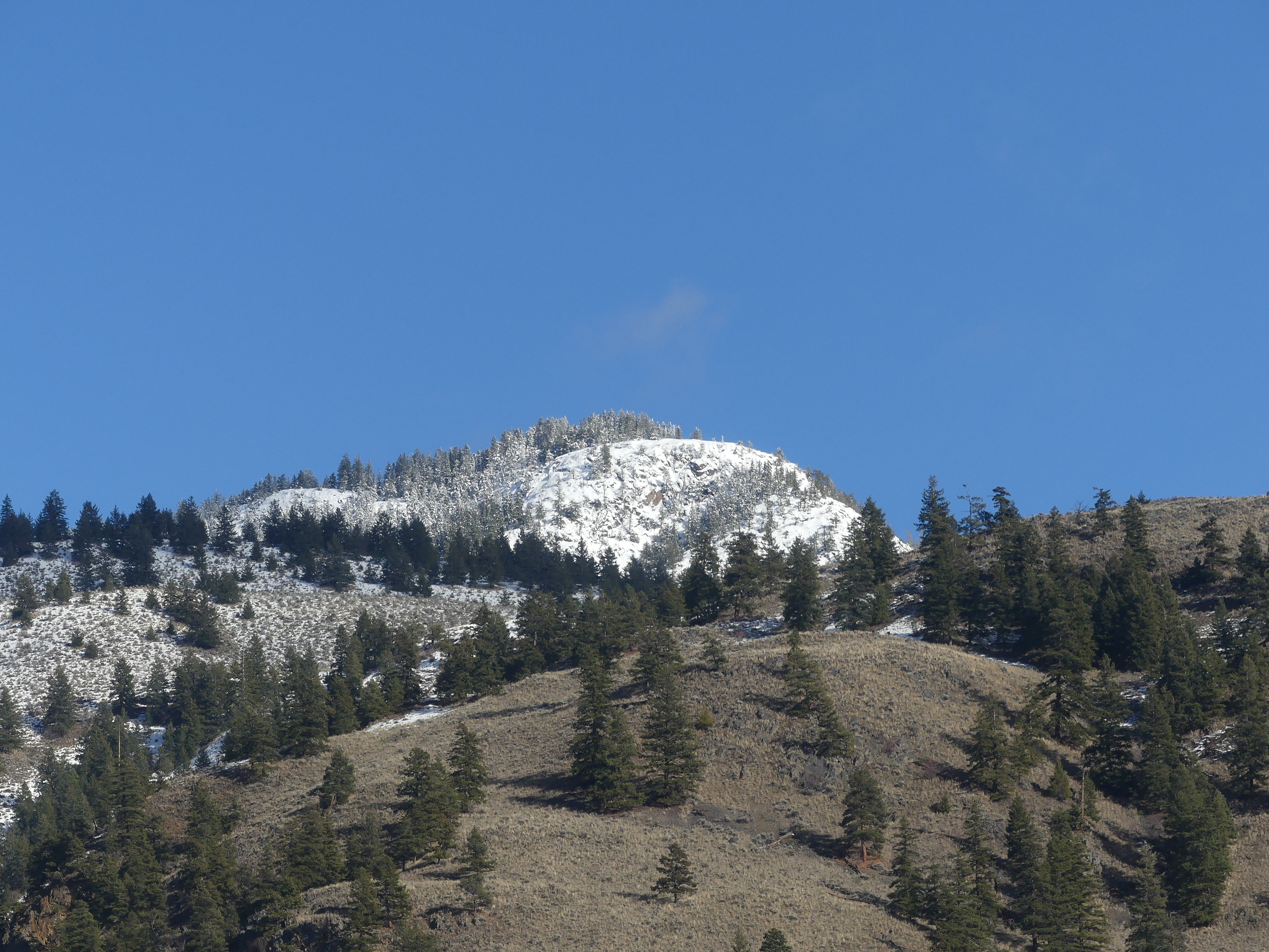 Mountains have heads, faces, arms and shoulders. Here’s one of its heads. It’s not a human head, or an animal head at all, yet it’s a head, above Keremeos this morning in the Similkameen Valley.