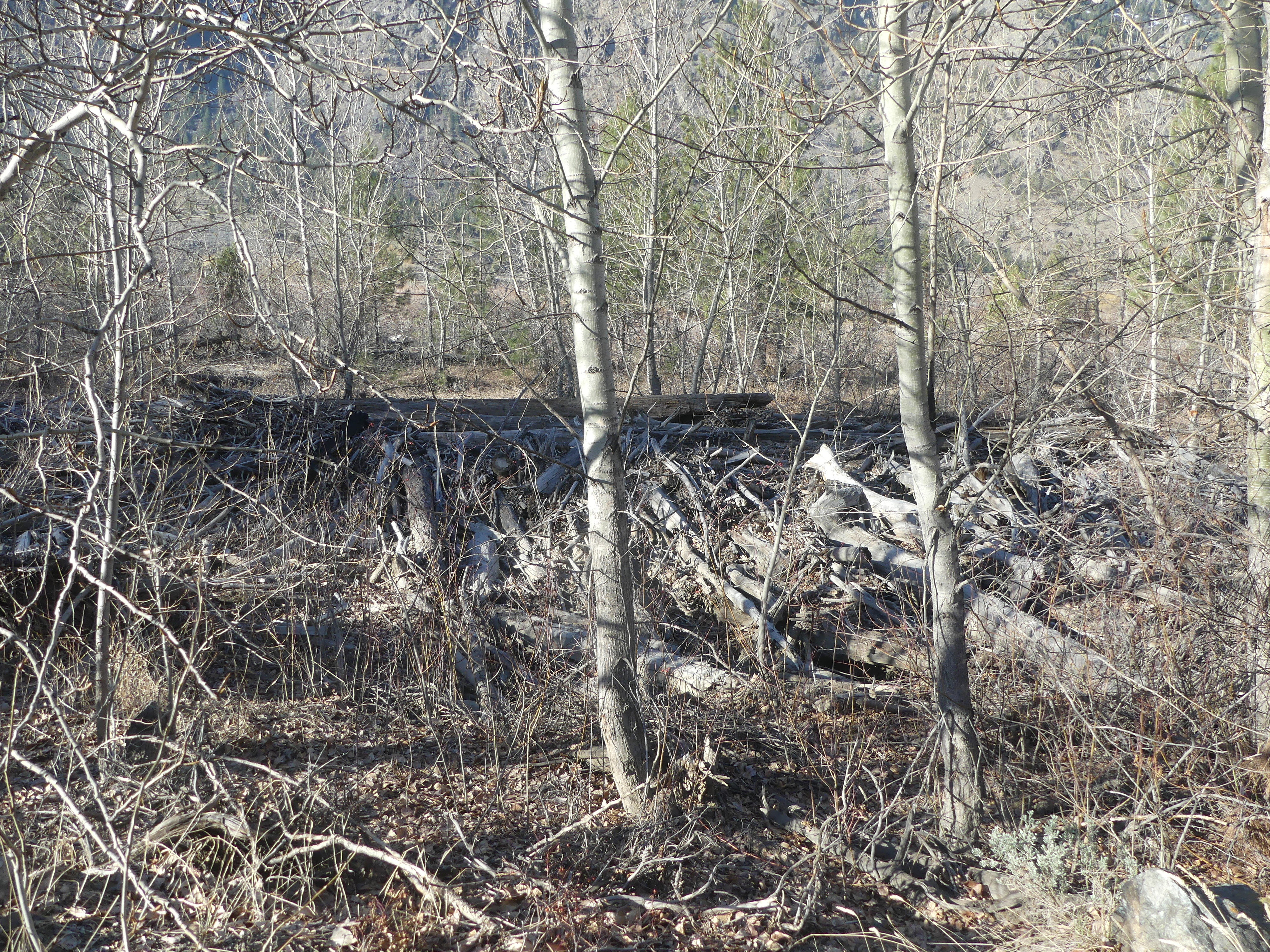 Successive floods planted cottonwoods and pines in behind. For now, the cottonwoods are making soil. The years are mixing it with cottonwood leaves, and fungal communities are rotting it all away. When the next big flood comes, it will be pulverized and will settle on any land it can get as soil.