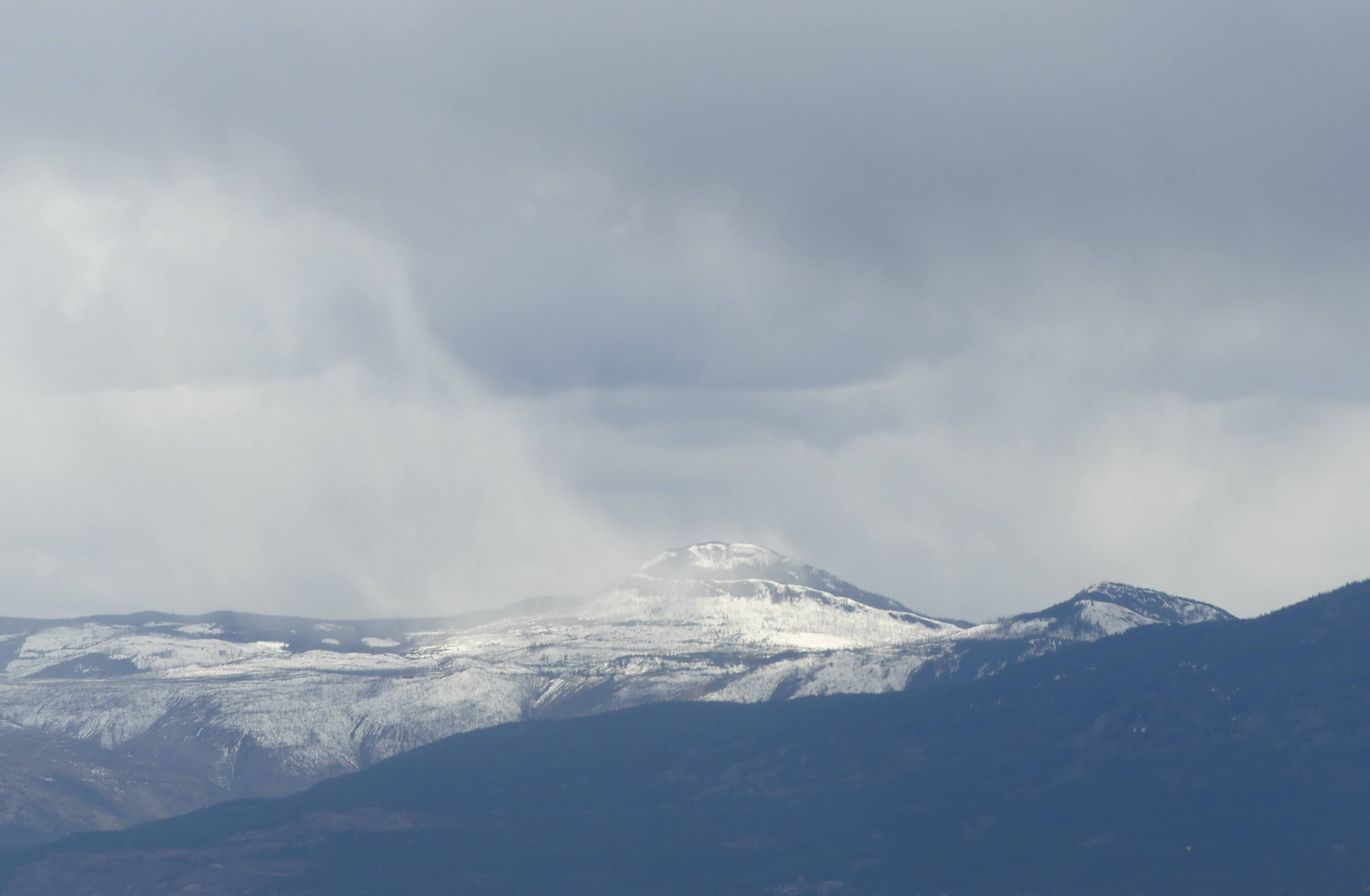 If you live in a place where you can’t see the sky, you don’t need to know the weather. But if the sky can get at you, you should have a personal relationship with it. Here is the view across Okanagan Lake from my house. This is Terrace Mountain, direction West South West. Those clouds are coming from the Pacific, a few hours away by eagle. Notice how Terrace Mountain is squeezing the clouds to drop snow. Notice as well that it is lightly falling at about 1000 metres, and only around the mountain. Down here, we can smell it on the air. It tells us what to plant and what to forage for on the hills, by the feel of the air on our skin. Should we be worried for our blossoming apricots? Not particularly. If the mountain wasn’t there, the snow would be a pressure effect within the cloud and would just sail on by. Look at it. It’s being absorbed back into the sky!