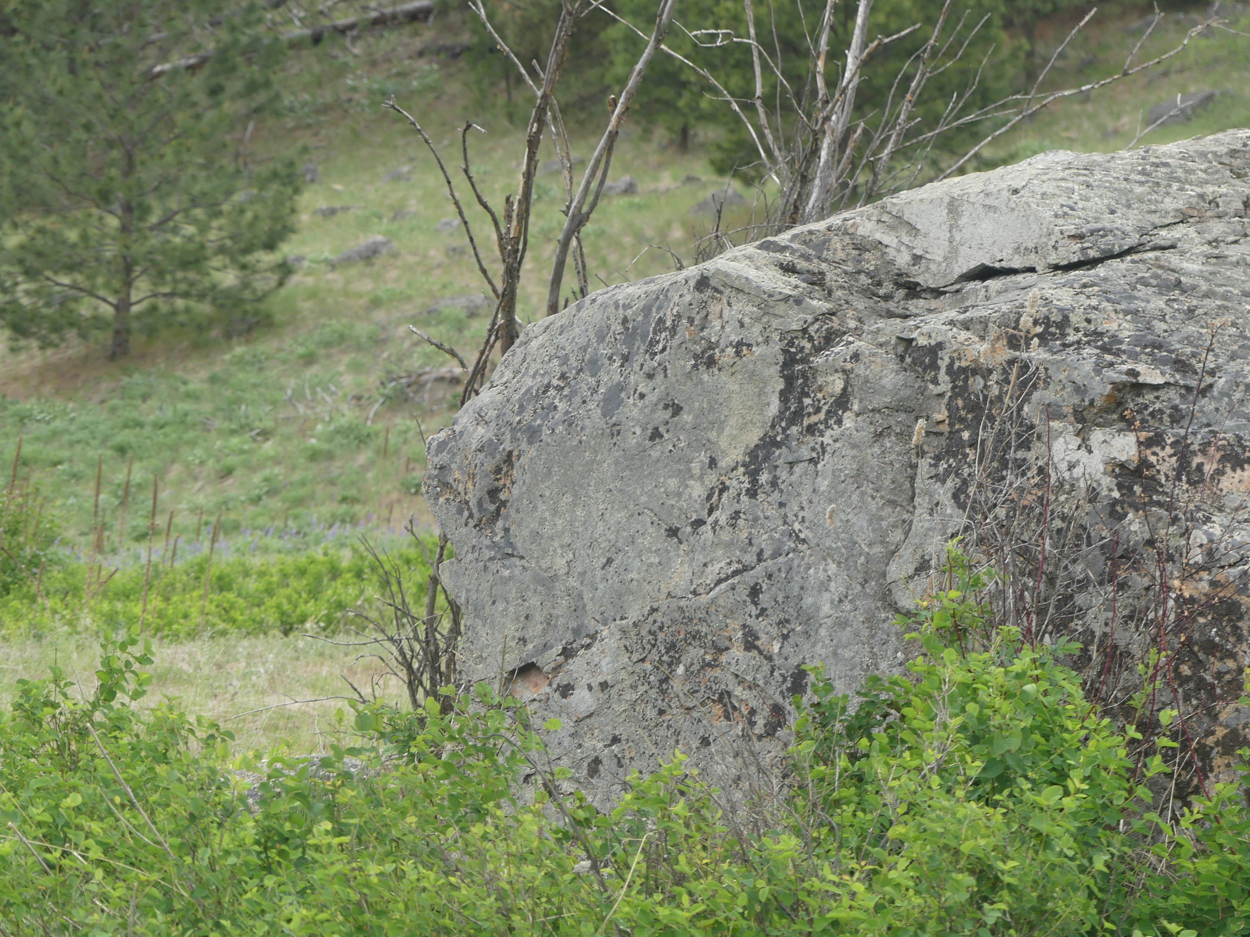 Perhaps the artist was signing their name. Note that there are two marmot heads looking to the left. For one, the leftward bulge of the rock is the mouth, teeth and nose. The X is above its eye. For the other, that whole head is the nose. The mouth and teeth are below it. Perhaps pulling back just a little makes it more clear.