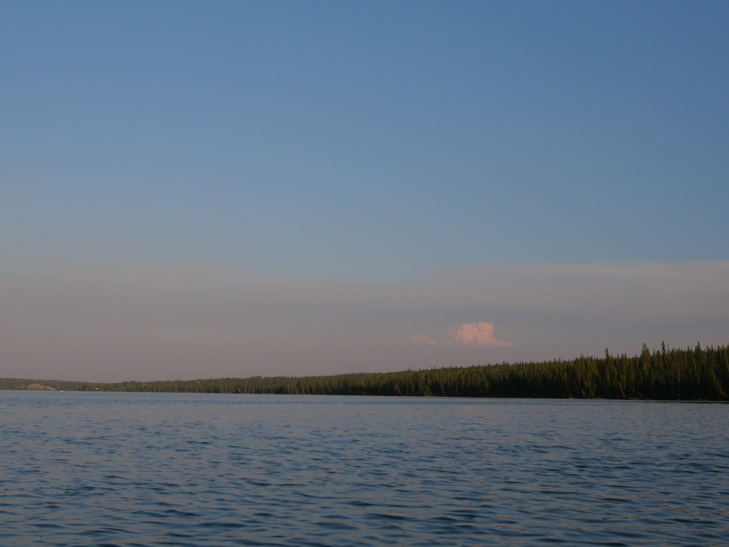 Here’s the Flat Lake Fire when it first really got going a few evenings back, looking north from Big Bar Lake.
