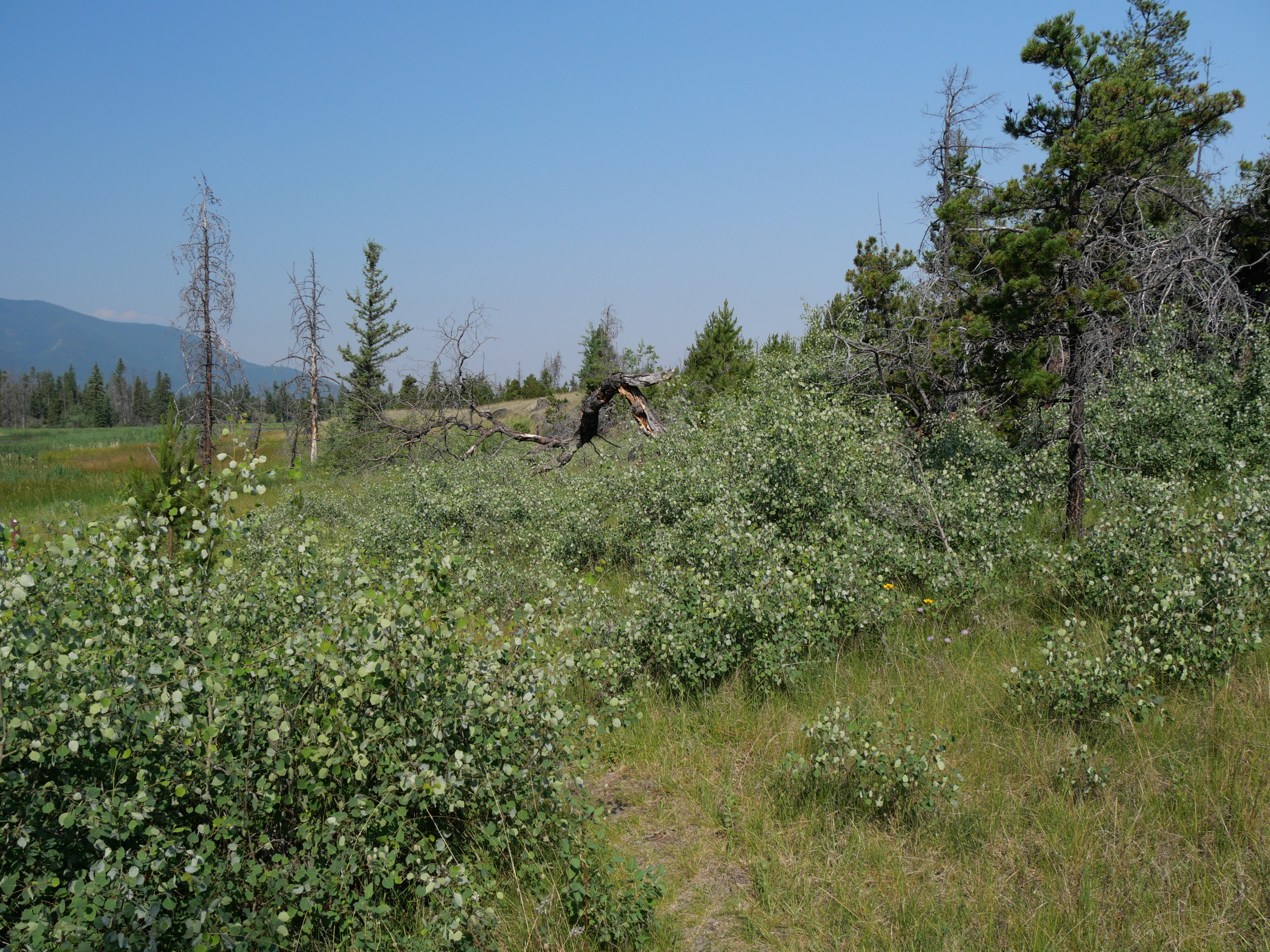 Can you spot the old, “dead” aspen, in the centre of the picture, from which these young ones are sprouting? It came down about 4 years ago.