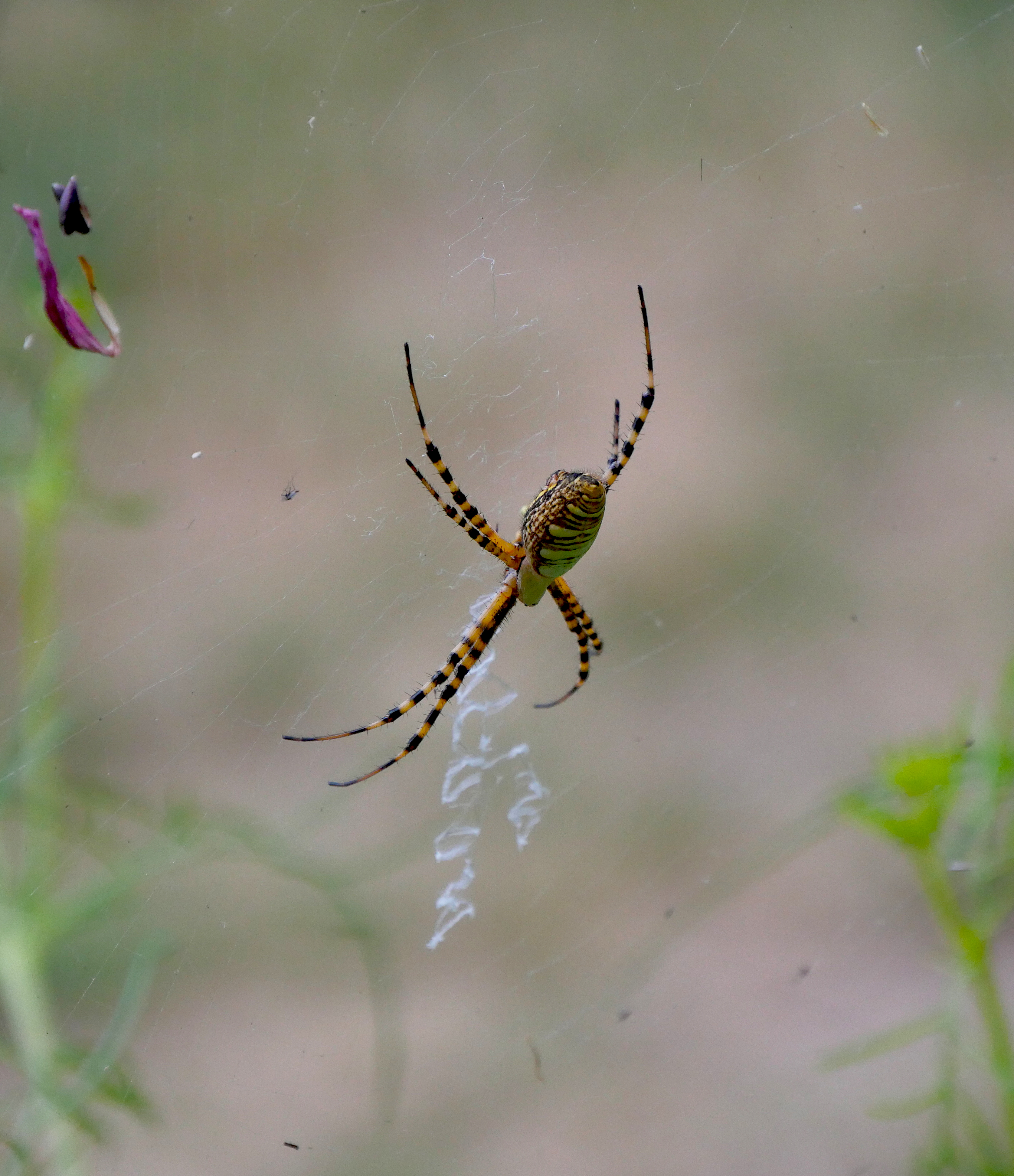 Yesterday’s dinner ( a big black fly) ripped the web, but, hey, it’s not worth throwing out yet, eh.