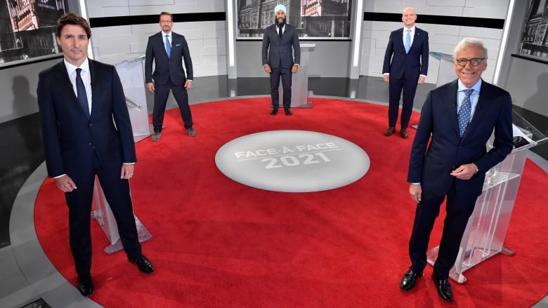 Federal leaders spar over vaccines, health care and guns in first French-language debate