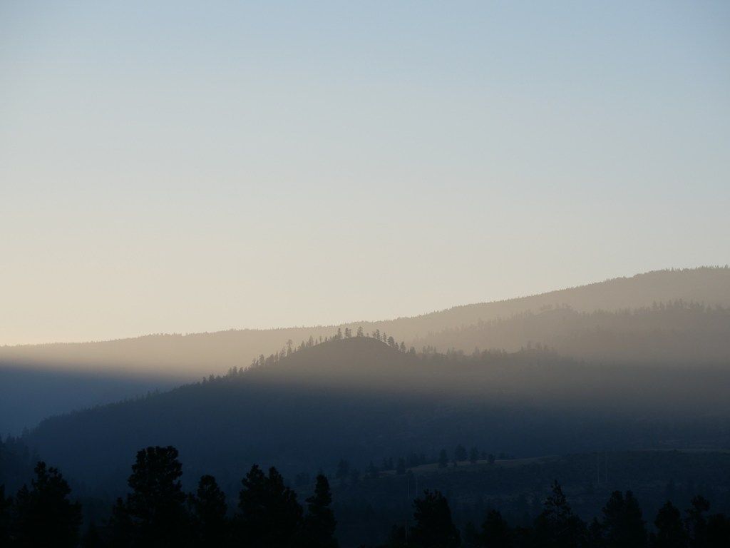 The sun rises over Shuttleworth Creek, at the heart of the Okanagan. Still a world of smoke.