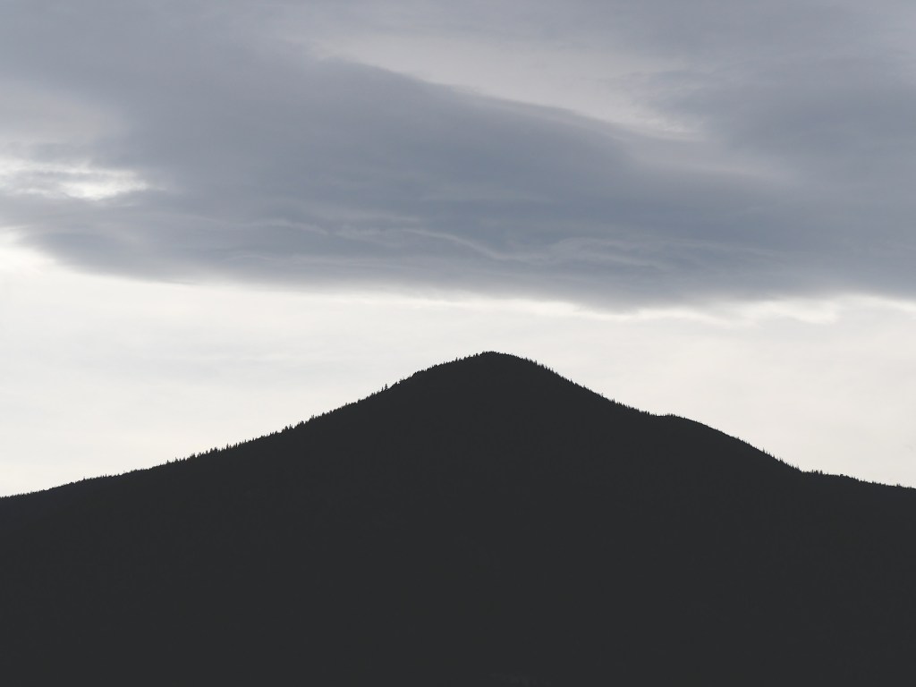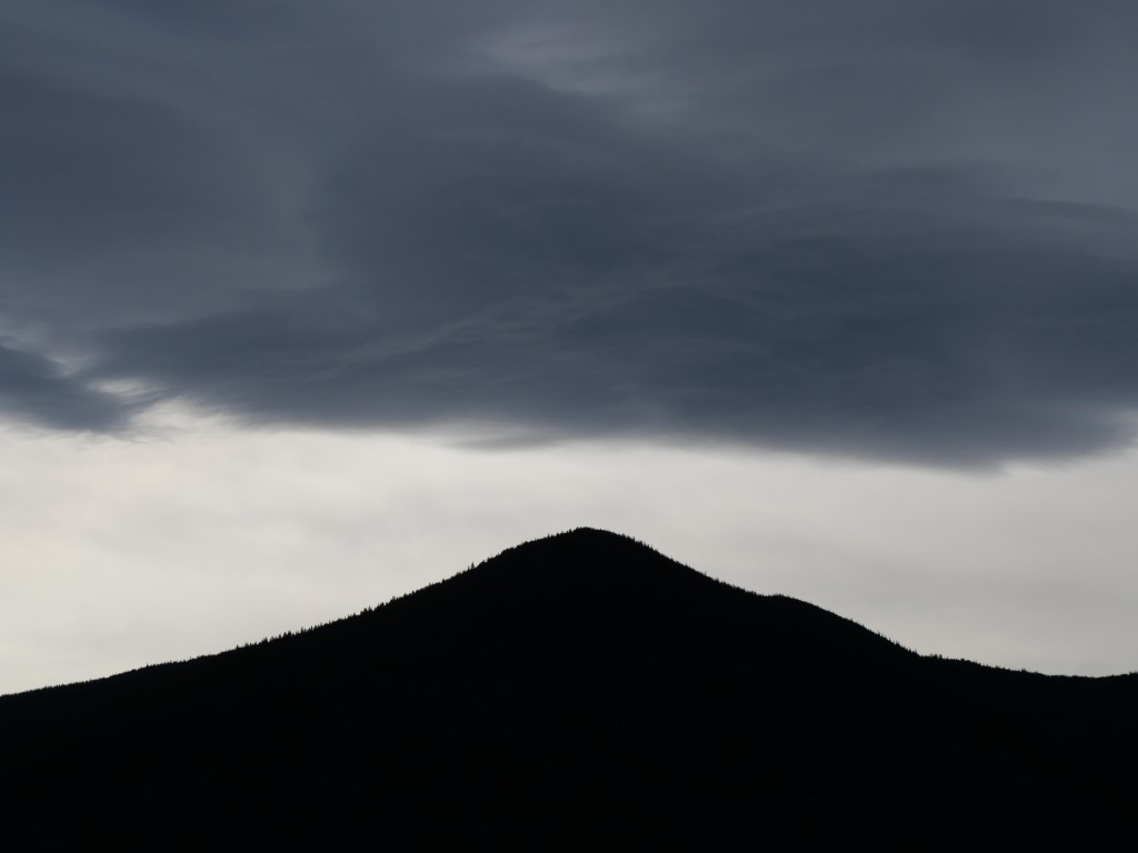 Look what happens to a cloud as it goes over Jesmond Peak in the Marble Mountains and has the Plateau in front of it for the first time. It makes a reverse image of the mountain!