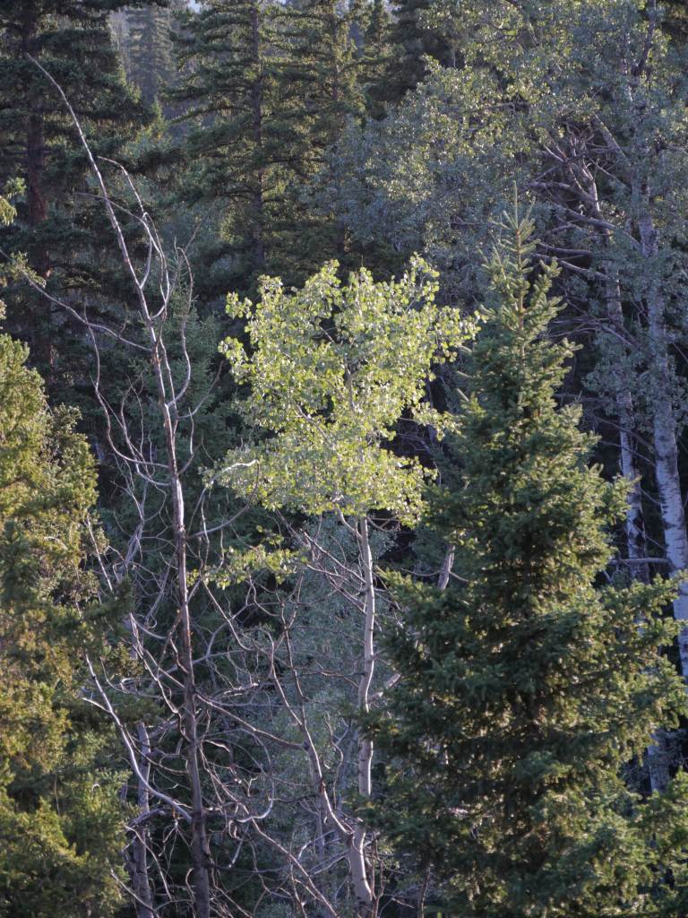 Let’s not think that these are just watery effects, rising from the watery eye’s affinity for water, or the way that light reflects off it, but not completely, a pretty attractive mix for a visually-dominant species. It happens with the aspen tree below, too. It too is within the mind and the eye and the conversation between them as it is in the material world.