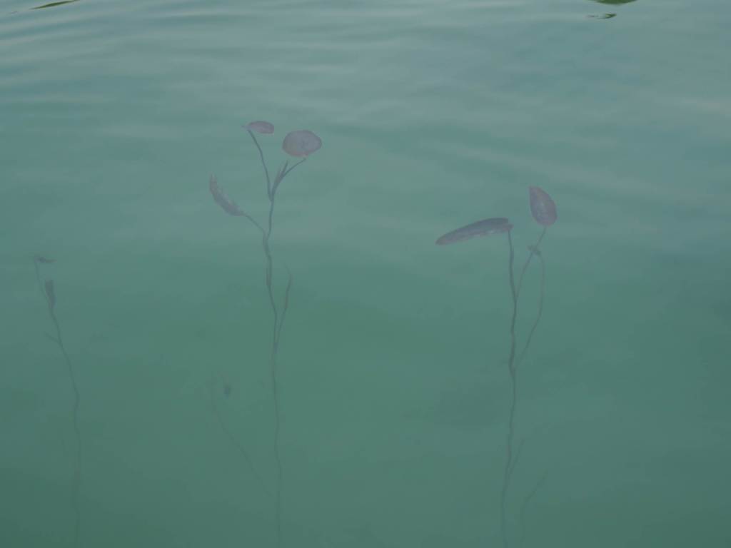 … and all of that is what you see: water, weeds, waves, light, and your eye, and your mind, millions of years deep. Oh, and a damselfly.