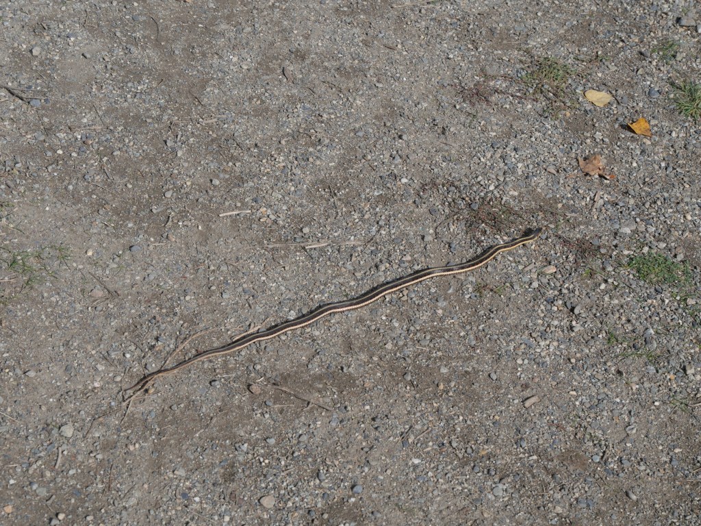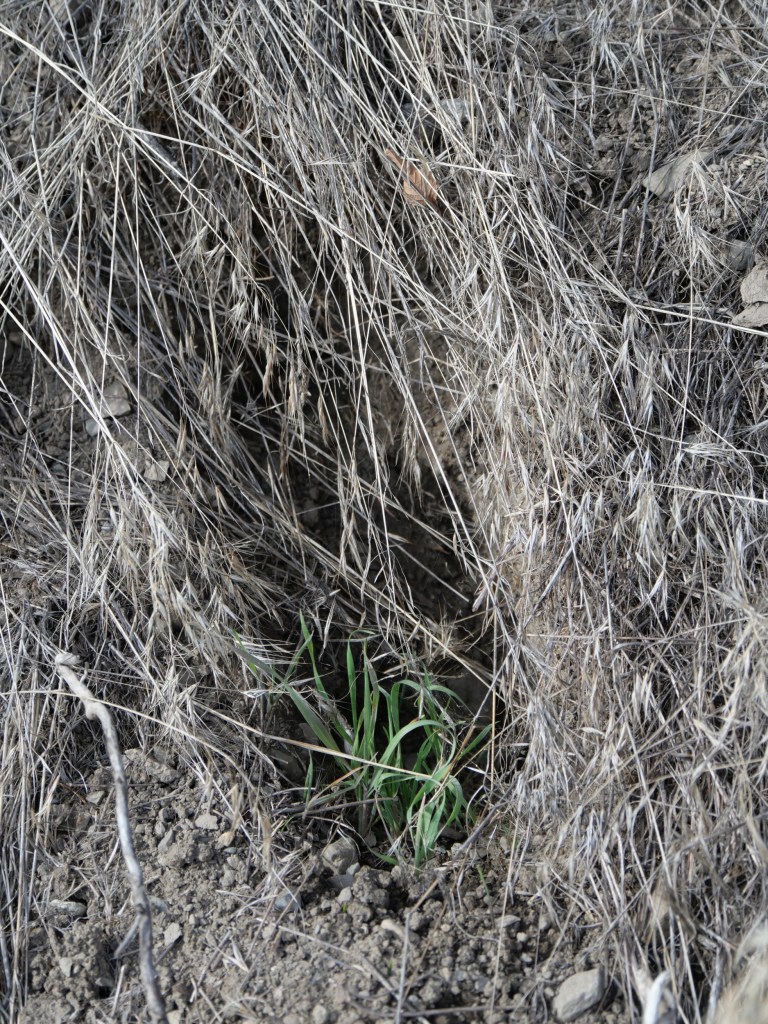 In each case, appearances are deceiving, as an obvious thing is revealed (a stick shape, a dried stalk, and a hole speaking to an unstable hill not worth climbing) and another is hidden behind it (a snake behind the appearance of a stick, a seed-throwing device within a dead stalk, tender seeds behind a veil of dead grass). The cottonwood below hides in plain sight as well.