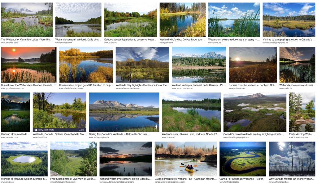 It’s no different! Apparently, the machines think we’re stupid. Or the people who create them do. Perhaps like all dealers. So I tried again, with “wetlands Canada”: