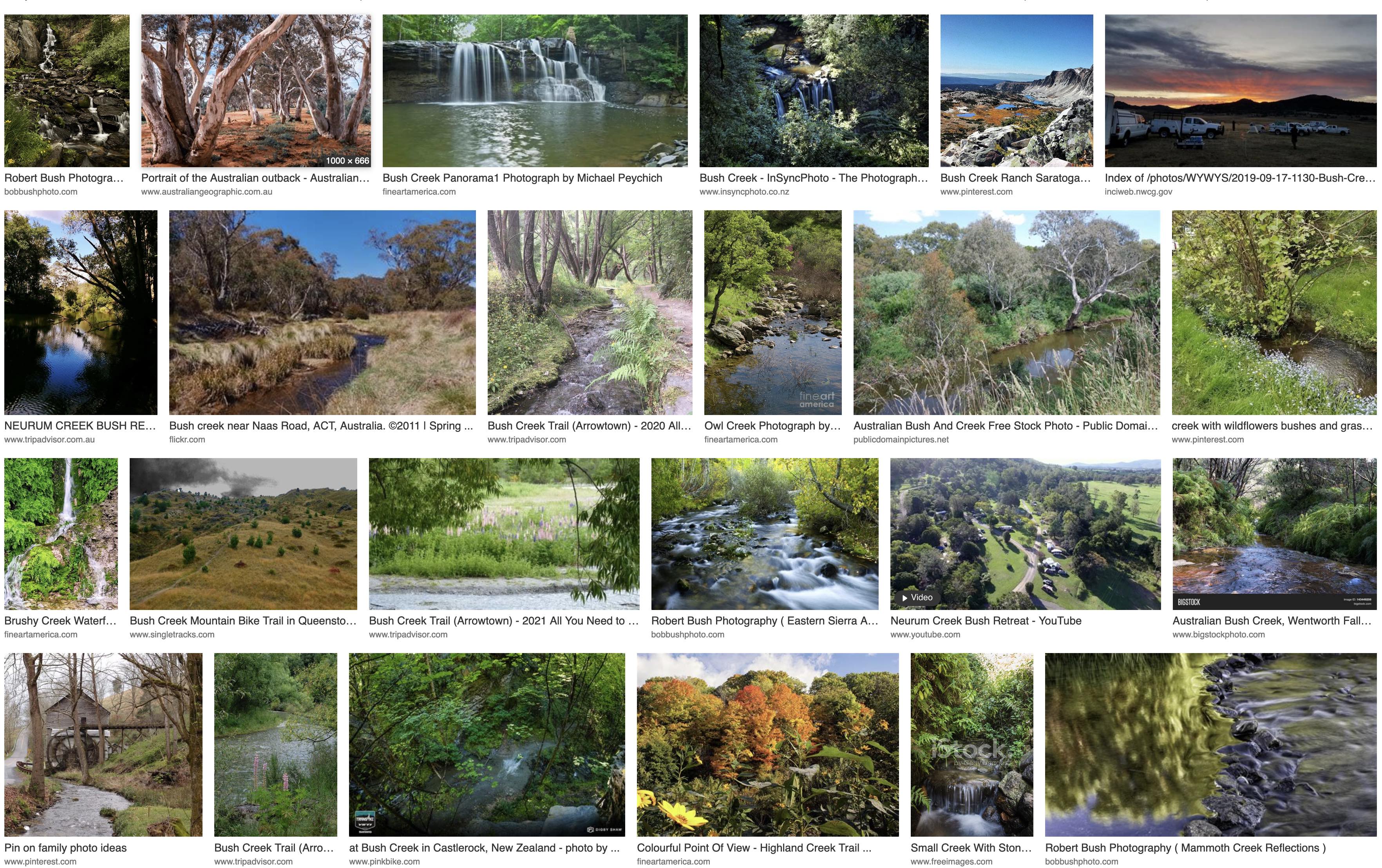 So, I tried to get around that. I remember the early days with the Internet when the cleverness of a web search could get you info. Now it is run by AI and the banalities of Search Engine Optimization. That gives this AI version of “bush creek Canada”: