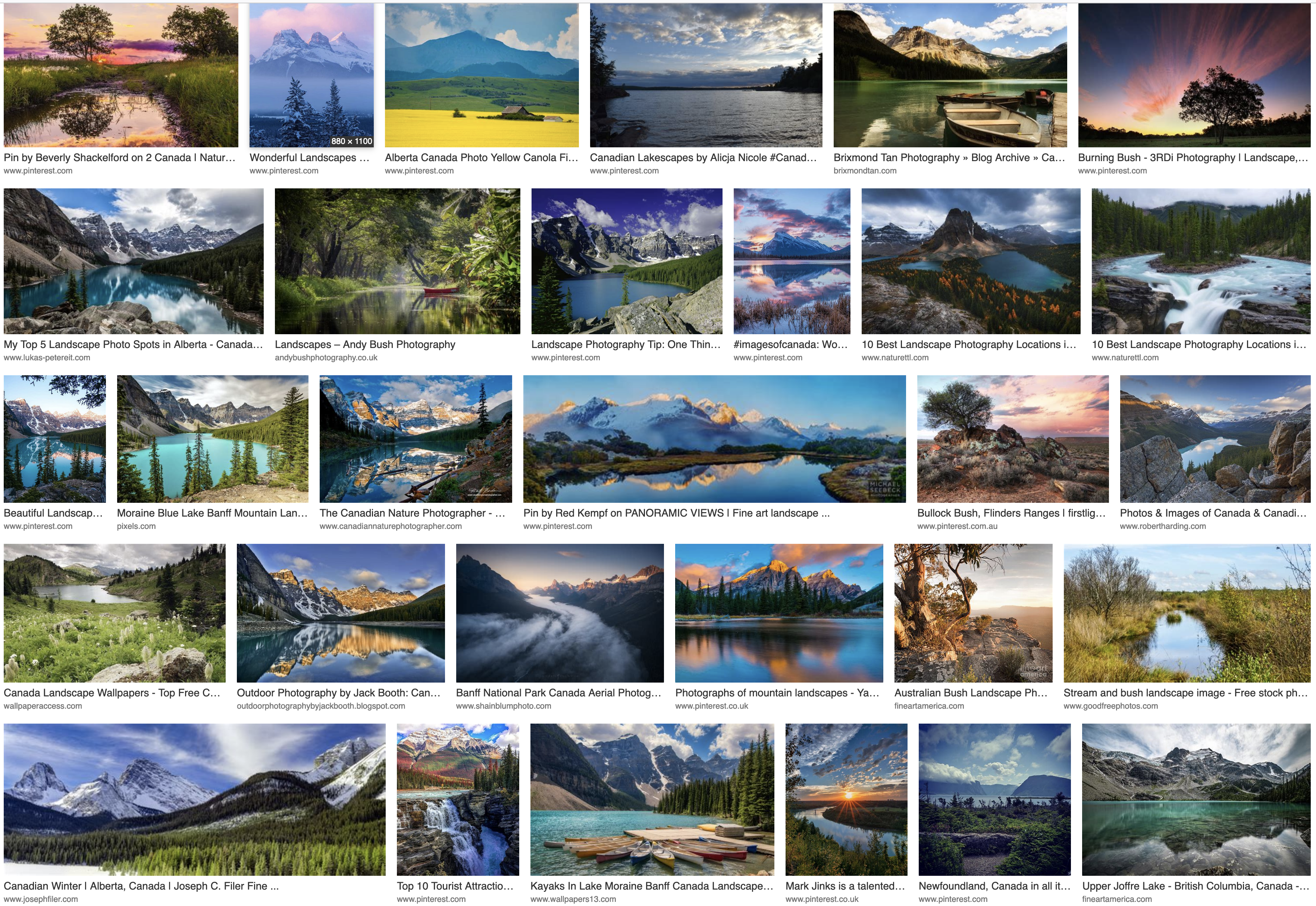 I chose to make these images in such a way as to have a sense of balance that maintained complexity and lack of a direct point of focus. It’s not entirely successful, but compare to an Internet search for “landscape Canada”. Compared to the above, this is clearly the mind on drugs.
