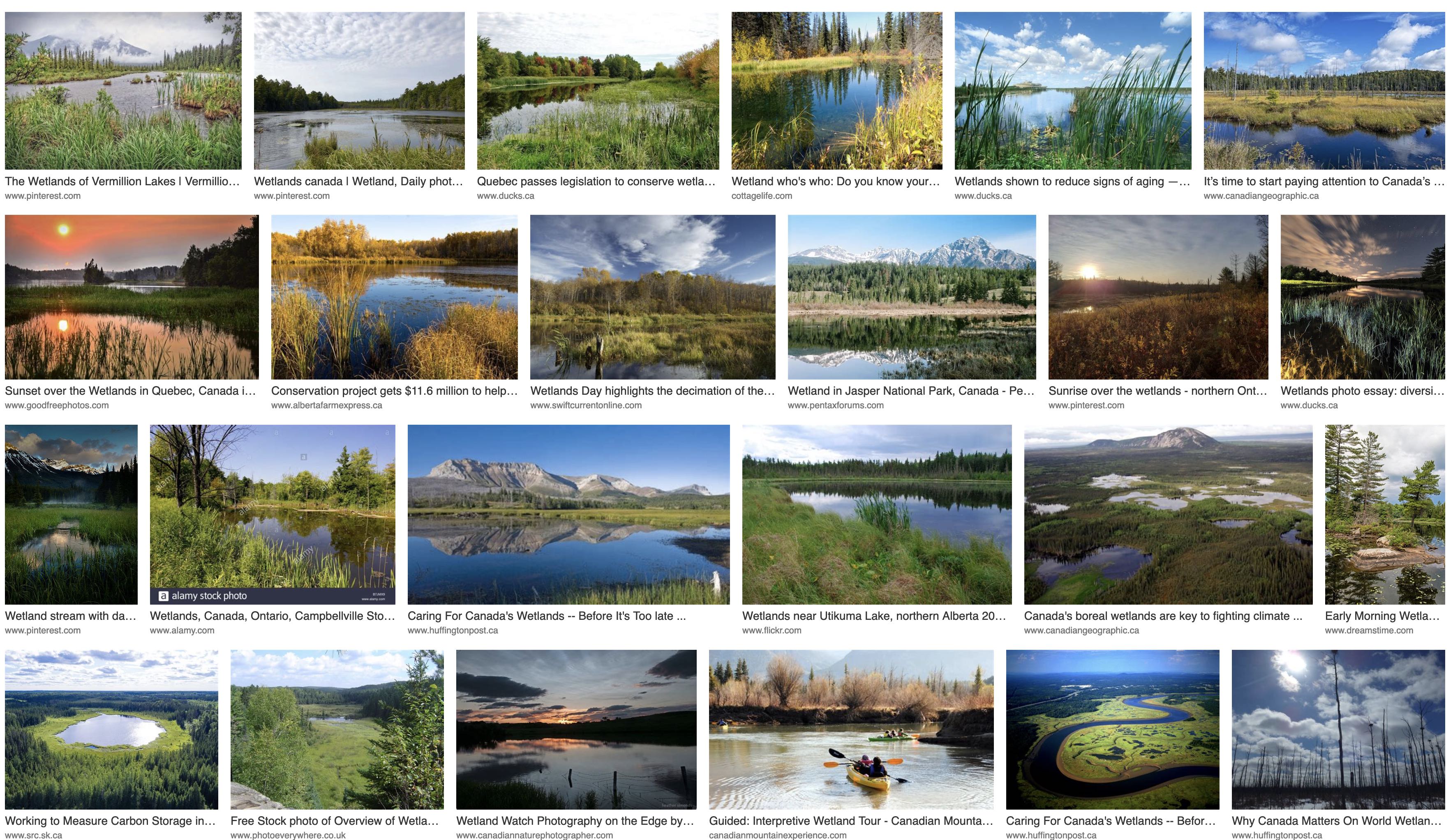 It’s no different! Apparently, the machines think we’re stupid. Or the people who create them do. Perhaps like all dealers. So I tried again, with “wetlands Canada”: