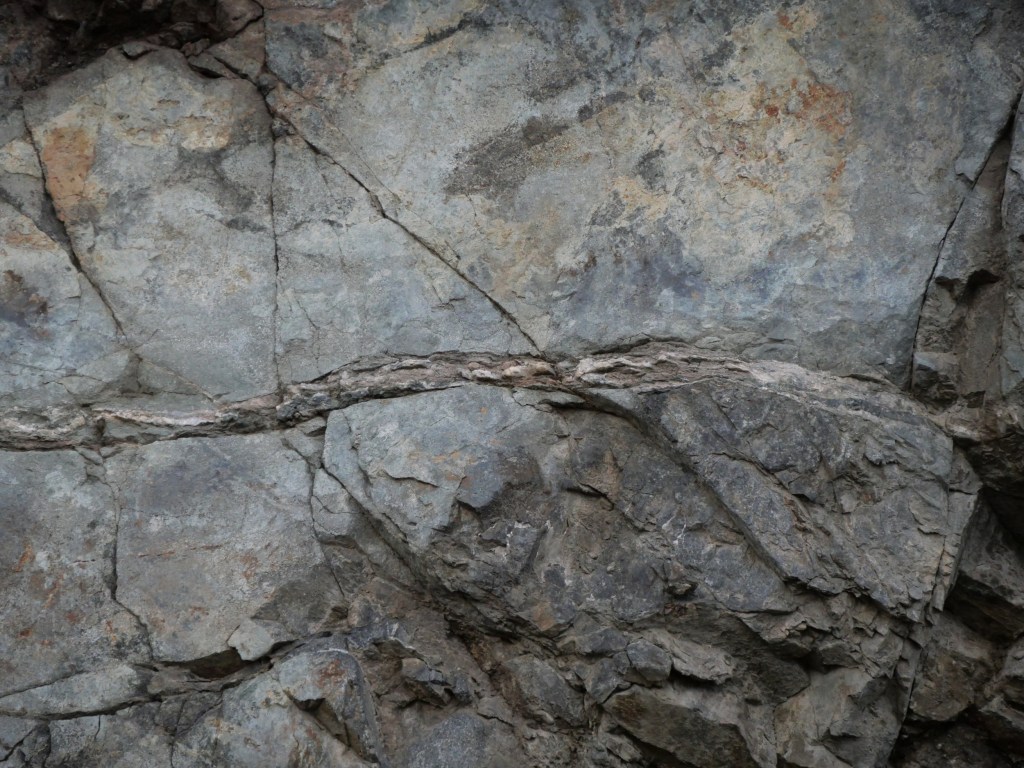 “Bedrock” conjures up stability, but look at this stuff. It has been splintered and fractured several times, long ago. It is made of various flows that have been compacted under heat and pressure and others that fill old cracks and breakages. To this are added the new breakages of blasting to make a road. This face alone is one of those breaks.
