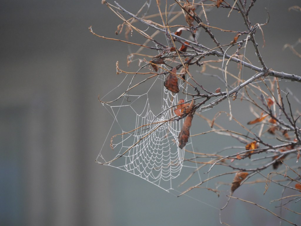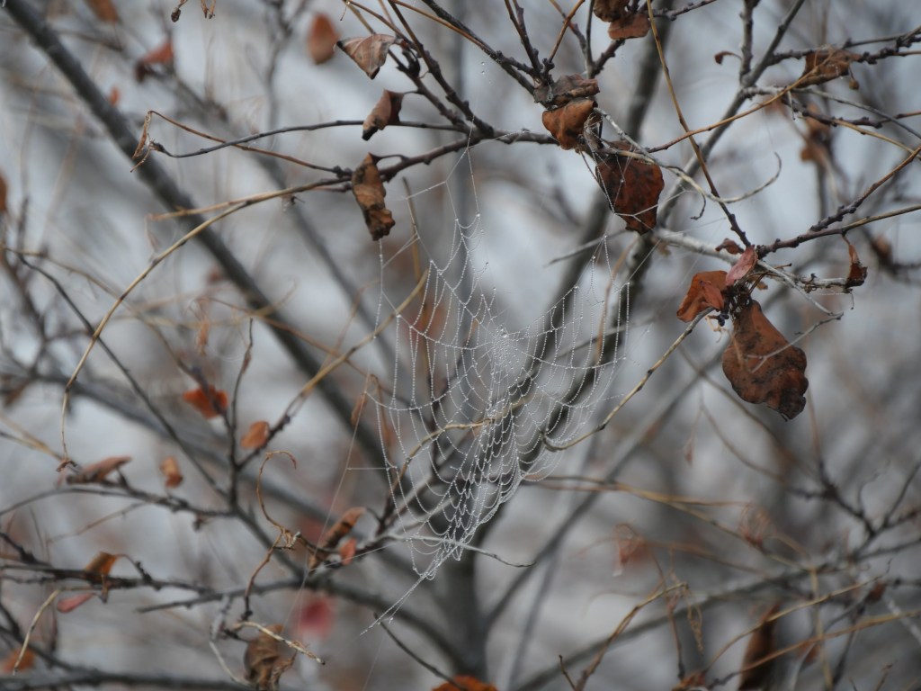 Most spiders I have met are diligent weavers who repair their webs. Well, except for Black Widows who live in rags put up only to give their males something to fight over (pretty much). The rest repair their webs. Here’s a web that wasn’t patched up, though.