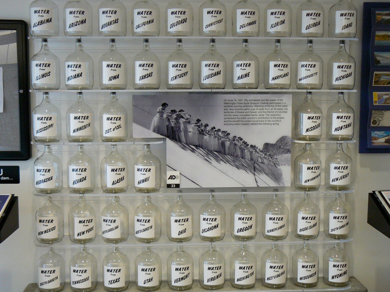 One White princess from each US state pouring a gallon of clean water over Grand Coulee Dam to Christen it.