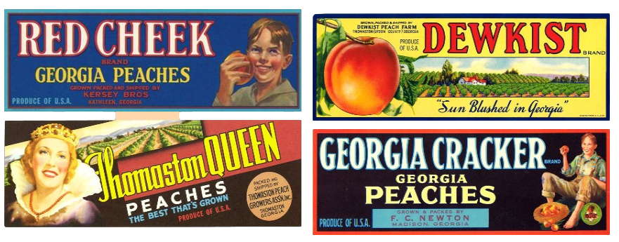Red-headed American boys and aristocratic American women were the images used to sell these peaches.