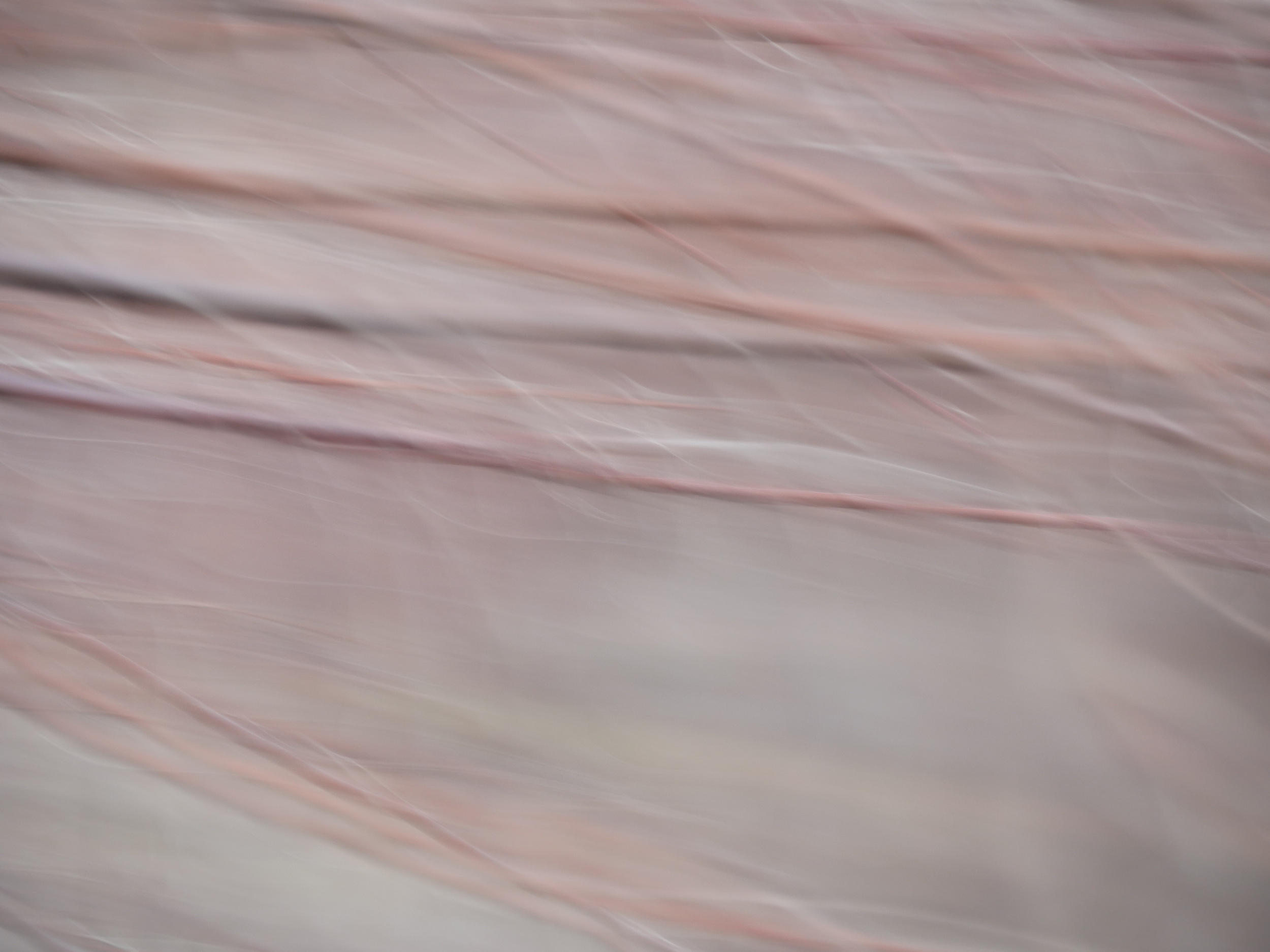 Its angularity creates an entirely different effect, which the eye weaves as well, although not as completely. It is, mind you, a lot harder to enter a rose bush. Even the snow can’t manage that.
