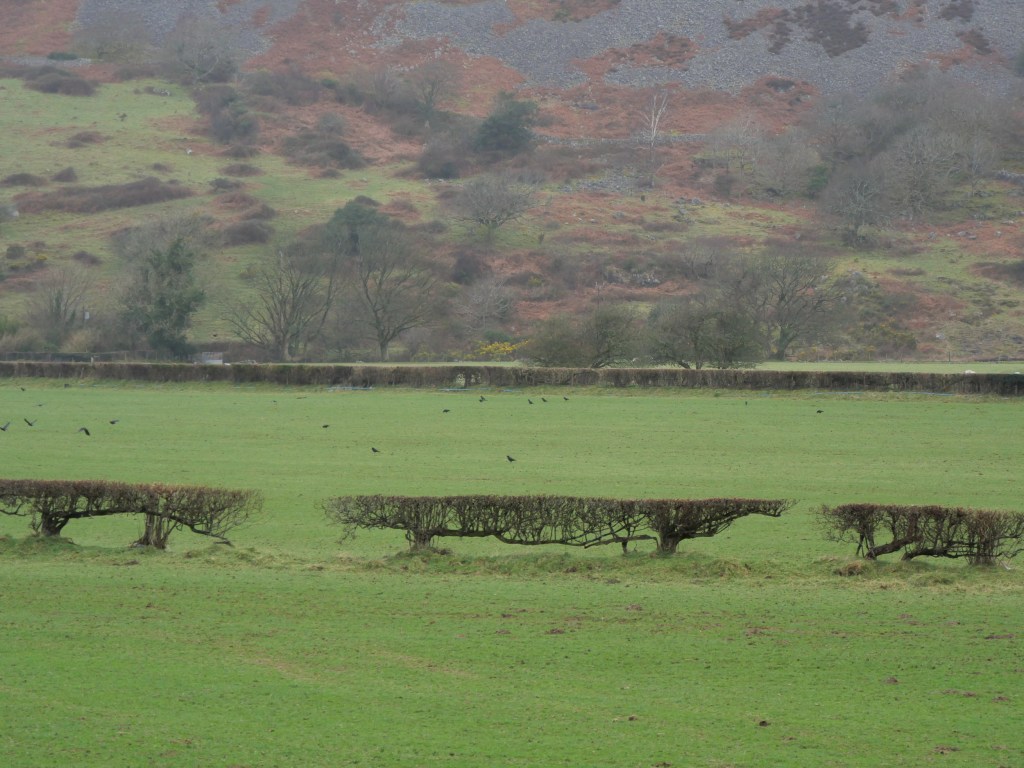 The sheep are still there in Britain, but something weird happened to the hedges, when the barbed wire idea came back from the colonies: the hedges are now trimmed at a metre height in the fall, destroying any capacity for harbouring insects, birds and mammals, the ones that keep the ecosystem healthy and the skies full of song. Somehow, the idea came through that the hedge was a fence, not a cooperative project between public and private uses of the Earth. That’s not all, though. Look at this one: