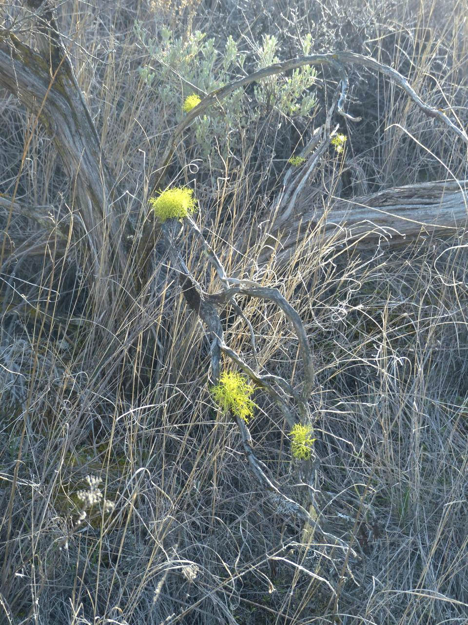 …and that is very useful. It is also useful to know that, yes, you can actually squeeze water from a stone. Our land use policies and water management regimes depend upon us all knowing these mechanisms as parts of a whole, and caring for the whole, rather than talking about H2O alone, whether flowing on the surface, falling from the sky or pumped out of the soil. It has a much richer story than that, and the fate of the Earth depends on us getting it right. The lichen below, for instance, is catching it out of the sky, at the same time it catches nitrogen from it as well, some of which feeds the flowers at the base of the big sage that holds it in the air. Not a bad trick.