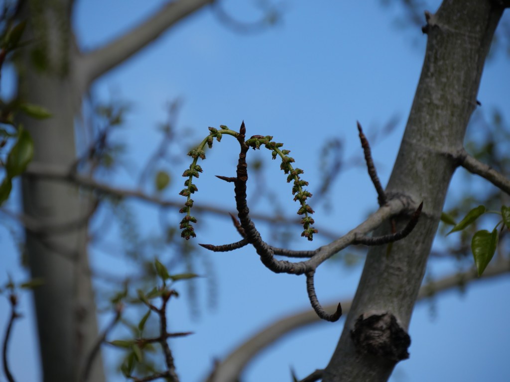 Here’s a pair of poplar flower brackets, showing us the origins of economy. If you look at the buds, you can see they come in groups of one, all dark and pointed, and yet among them are these specialized leaves, in a pair. From one comes two, but not in the sense of multiplication. There are two because they match, or are balanced.