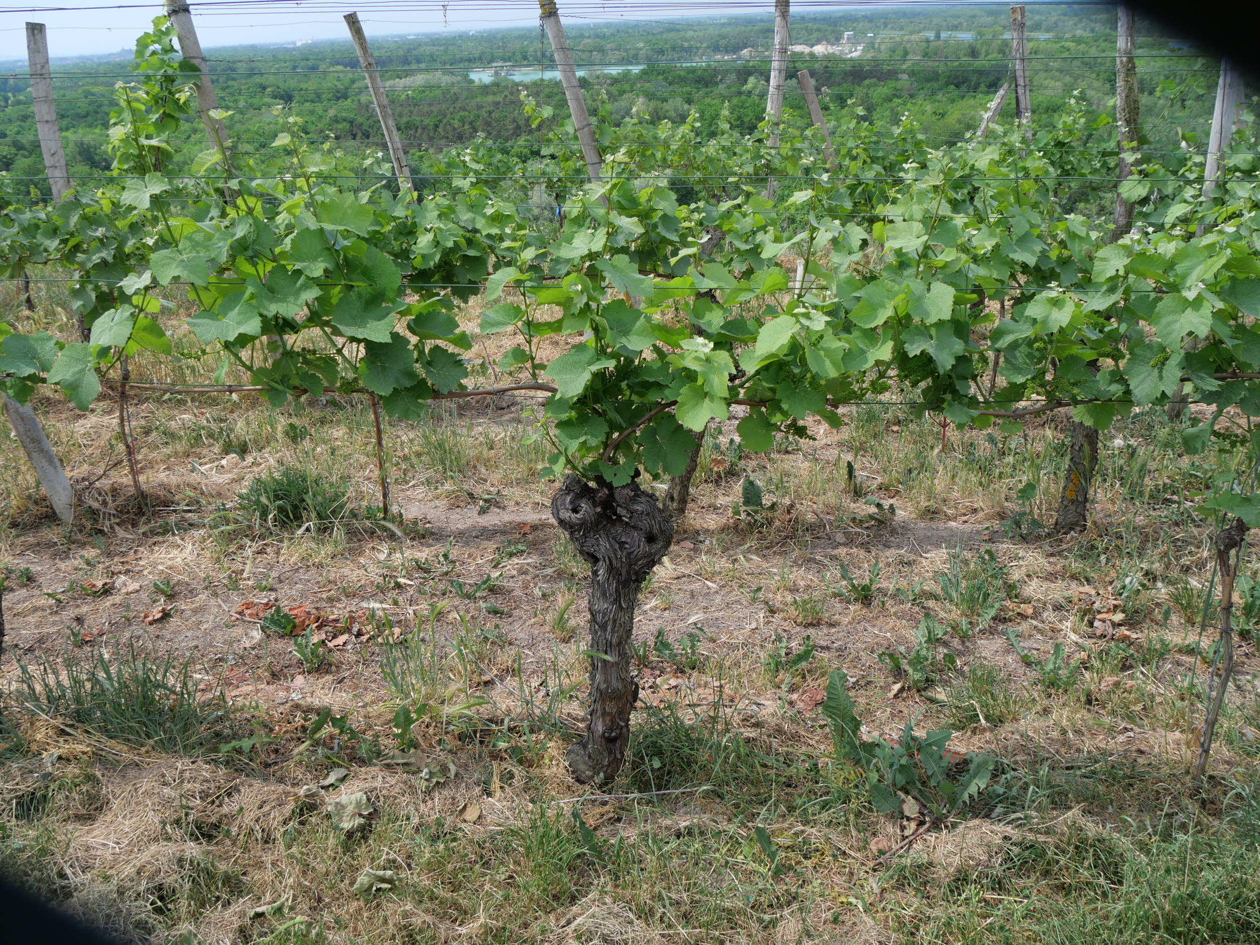 Look as well at how little weed growth there is, even mid-panel, where no herbicides have been applied. What there is instead is a cover of mulch, which has come from the rye that has been crown as a cover and then cut short with a mower. Drought is this vineyard’s friend: low grass growth, but enough in the early season to provide an evaporation-blocking mulch, and then restrictions of the vines to lower their draw of water as well. This is important, because bumblebees are in trouble. They share an ecosystem with vineyards, and Glysophate, the active ingredient in the popular herbicide Roundup, is reducing their ability to keep their broods warm in cold weather. But think about it. They need a nest in thatch or soil, the environment must be warm, even early in the year, it must not be weed=killed with Glysophate, and it must not be tilled (which destroys the nests).