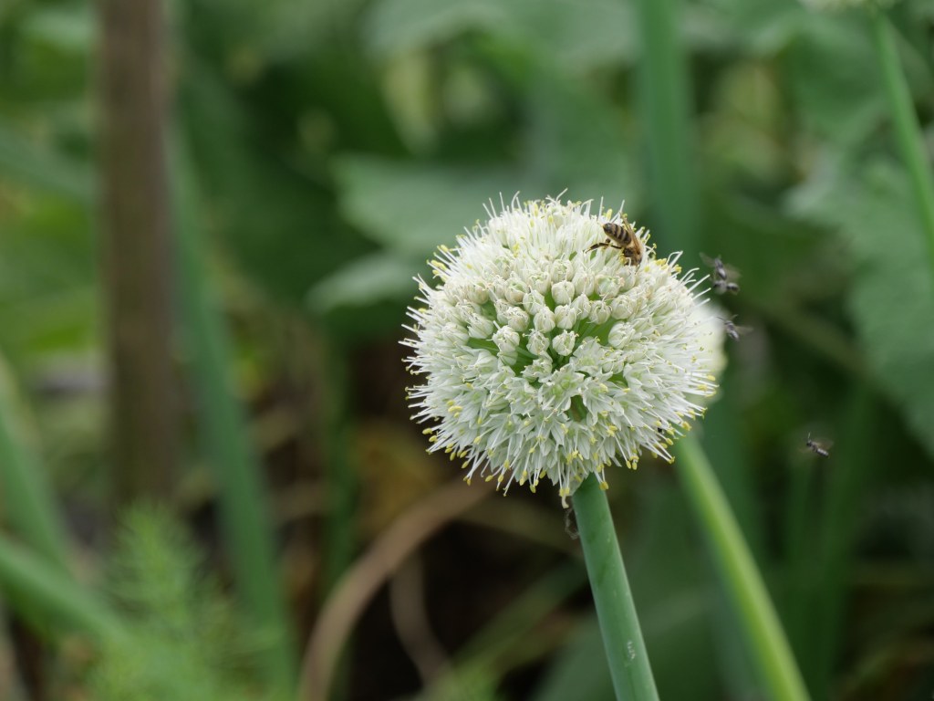 It’s just a simple onion, but if we time the cutting of the rye correctly, it will grow up through the stalks, flower, support the bees, hurry off its seeds in the face of drought, support birds, and reseed a crop under the thatch for the next year. It would limit us to growing grapes where the climate also supports onions, and few weeds. As for the weeds, what about thyme?