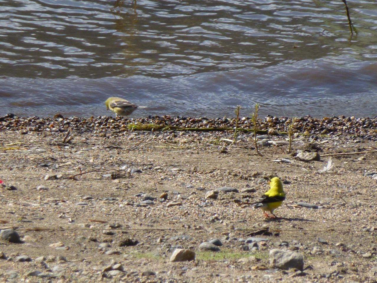 American Gold Finches Stepping Out from the Willows at the Conconully Reservoir
