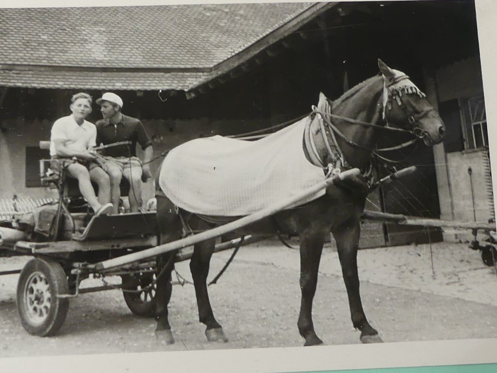That’s Hans on the left and Robbi in the traces with the lace cap. They were best friends.