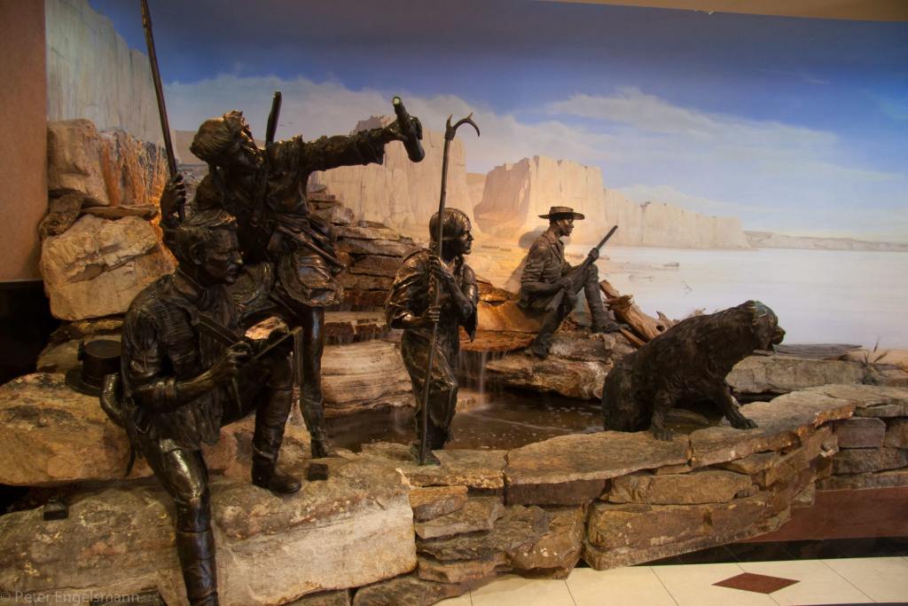 The river wouldn’t have been so high then. It’s dammed now. The river, though, was important politically. The explorers, one could certainly say spies, Lewis and Clark, and the freed slave (and thus cross-cultural ambassador in Indigenous tradition) Sacagewea followed it in 1805. Their goal was to follow it.
